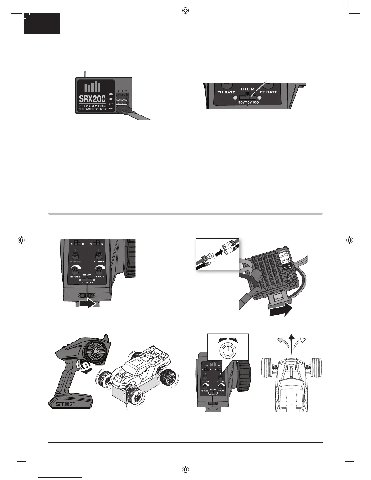 4. Center the ST TRIM and TH TRIM dials on the transmitter.
