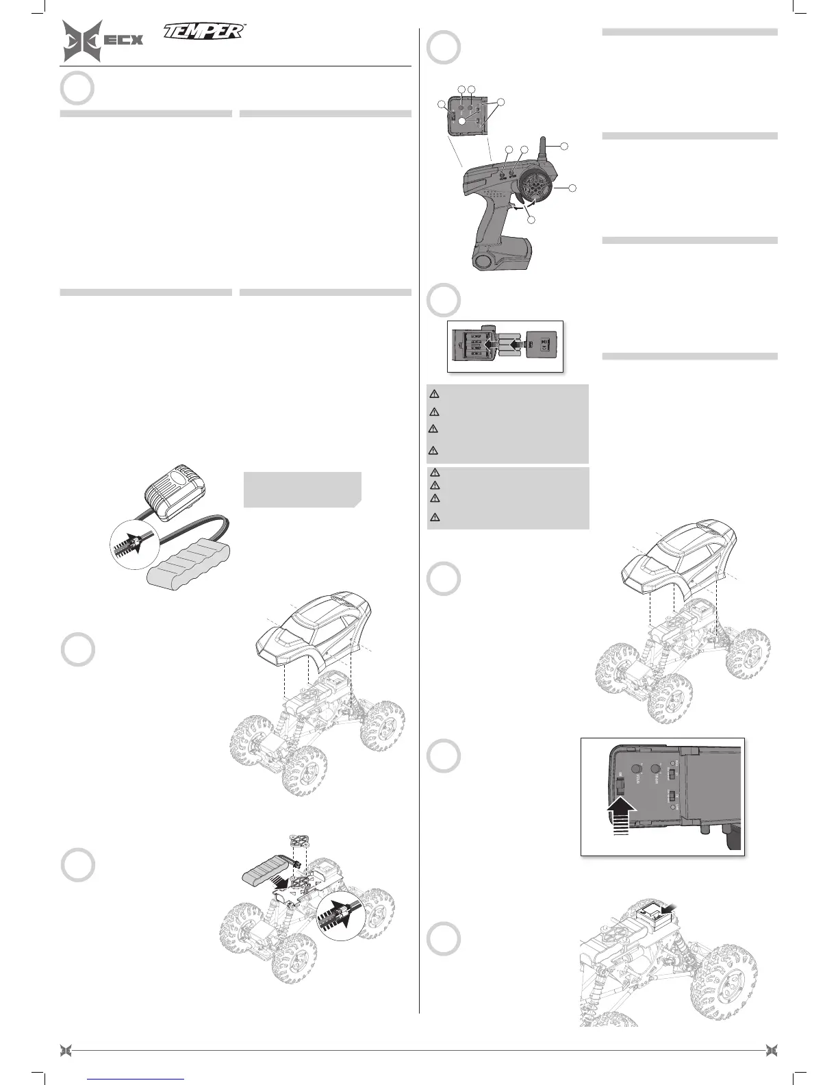 » Never allow the batteries or charger to come into contact with moisture at any time. » Lassen Sie zu keiner Zeit Akkus in Kontakt mit Feuchtigkeit kommen.