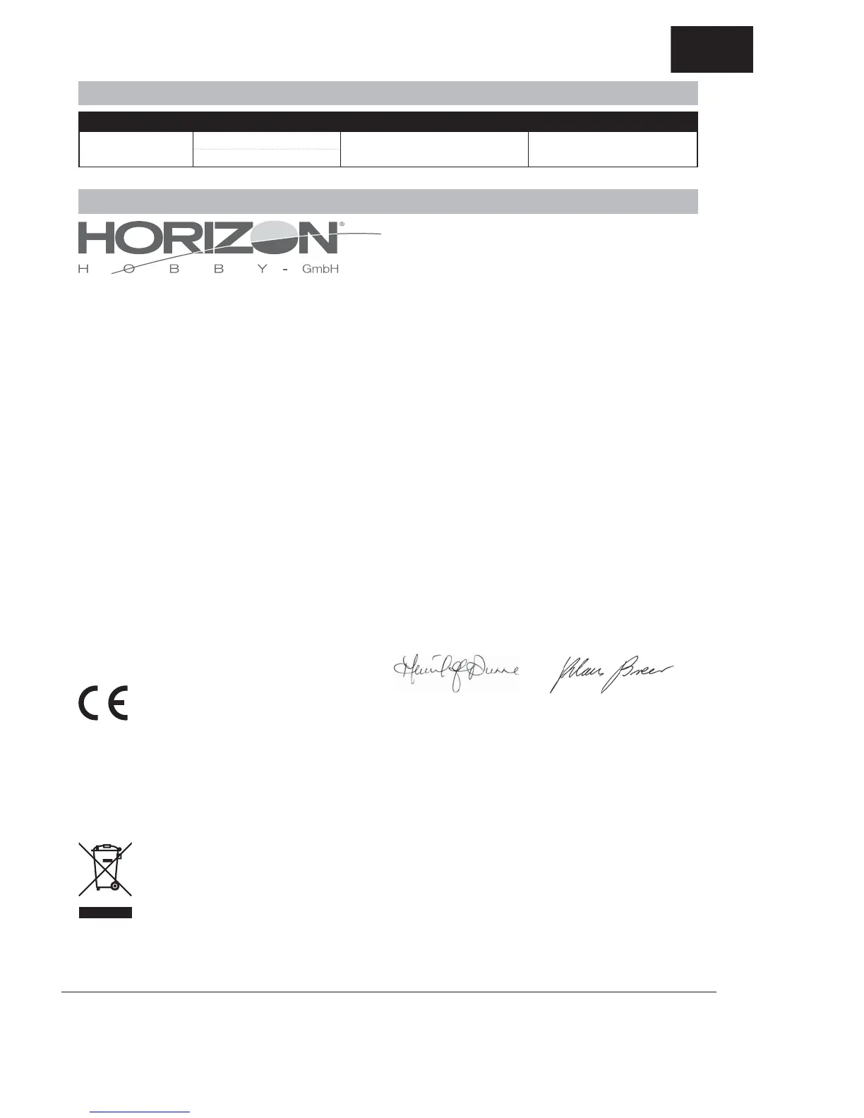 Geschäftsführer: Klaus Breer, Mike Dunne Tel.: +49 (0) 4121 2655 100 Fax: +49 (0) 4121 2655 111 eMail: info@horizonhobby.de;
