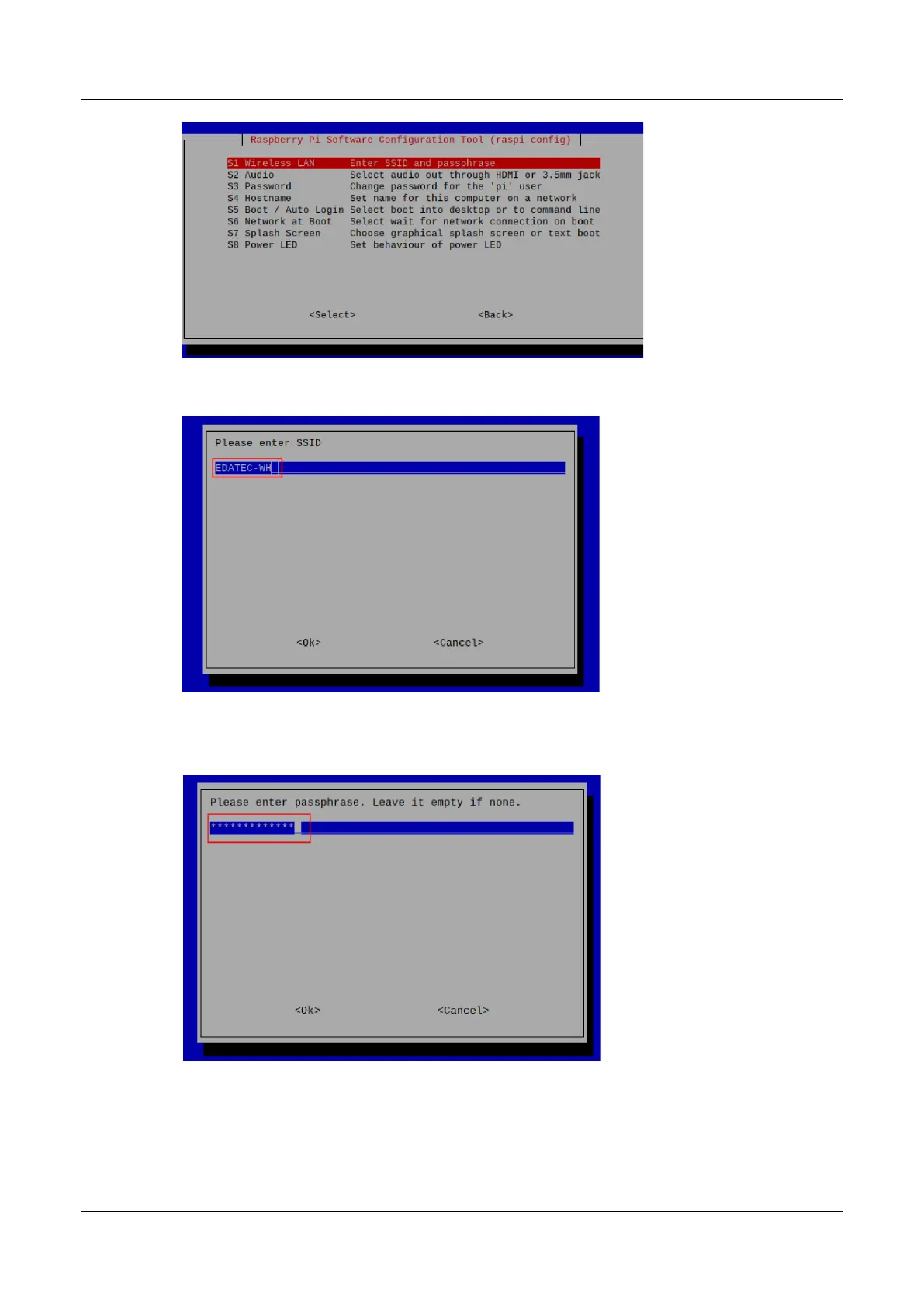 4. Press Enter to enter the WiFi password in the "Please enter passphrase. Leave it empty if