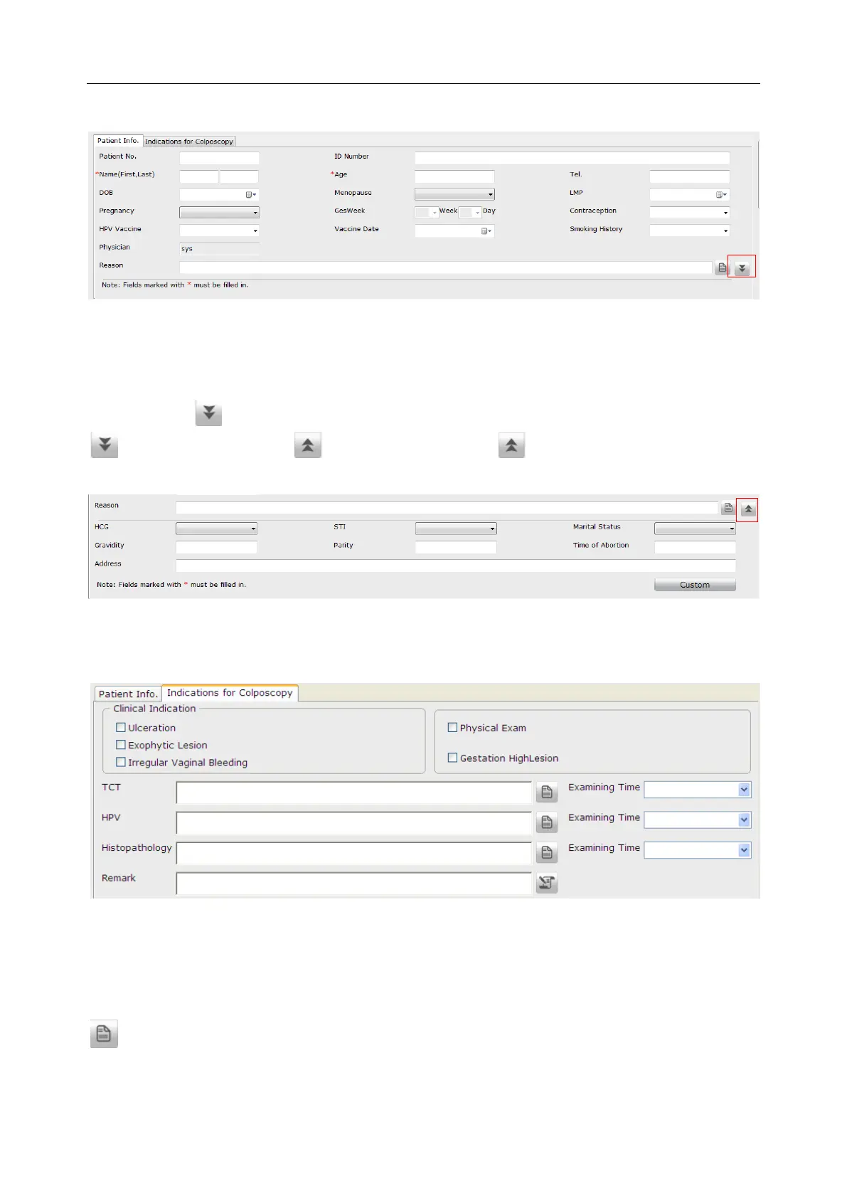 For Reason, TCT, HPV, and Histopathology, you can manually input the information or click
