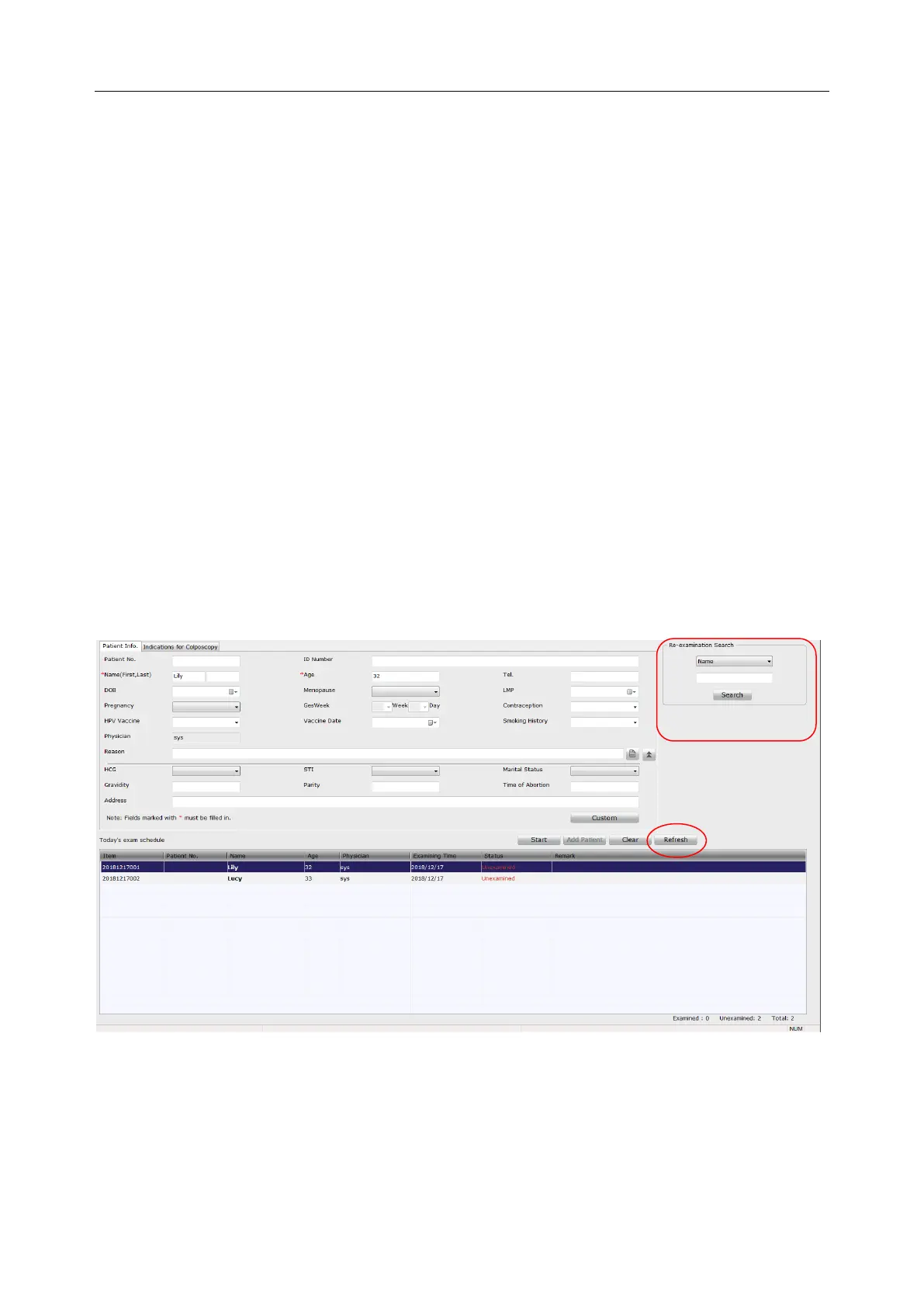 Click Search, all thepatientsthat meet the conditionwill be displayed in the Re-examining