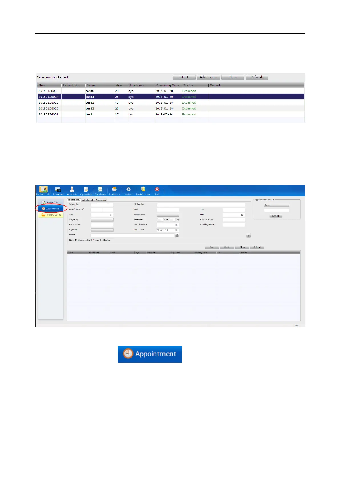 information such as patient name, age and appointment time on the Patient Info.tab and