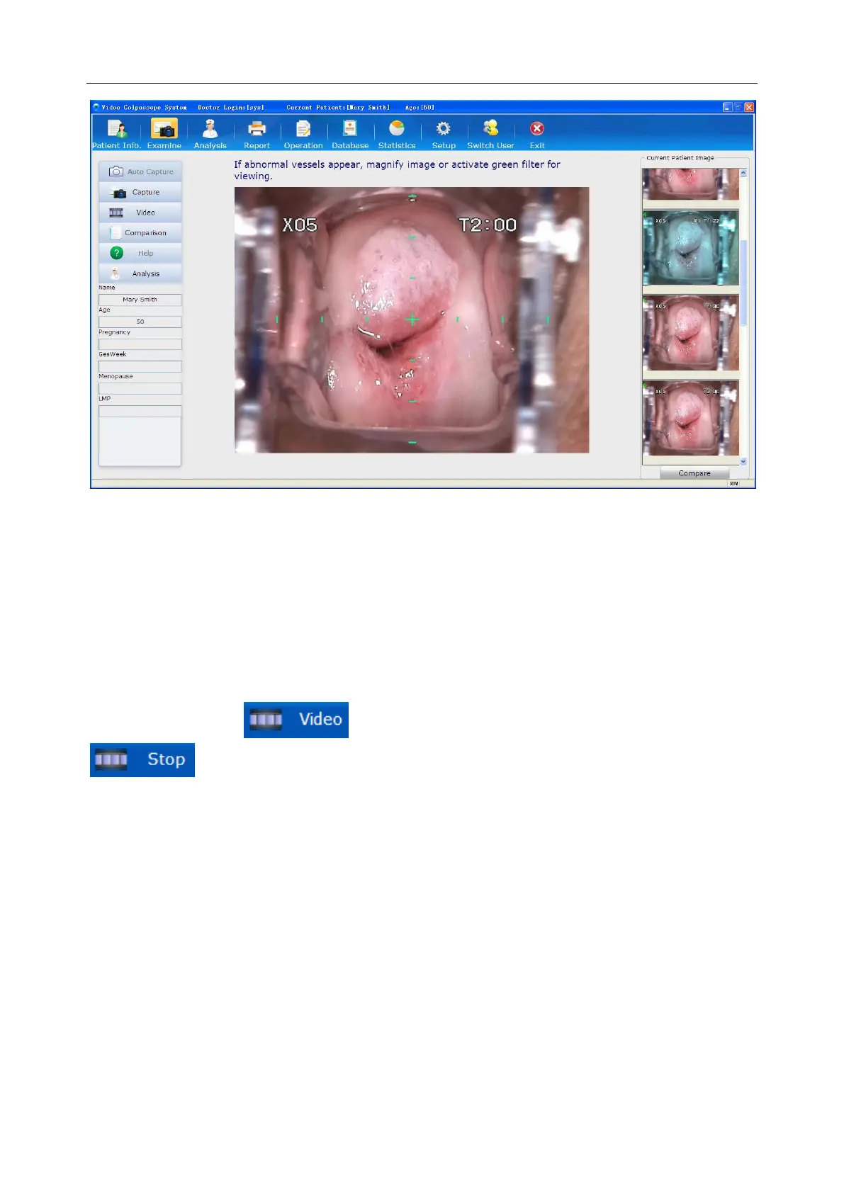 C3A, C6A, C6A HDVideoColposcope User ManualApplication of the Video Colposcope Software