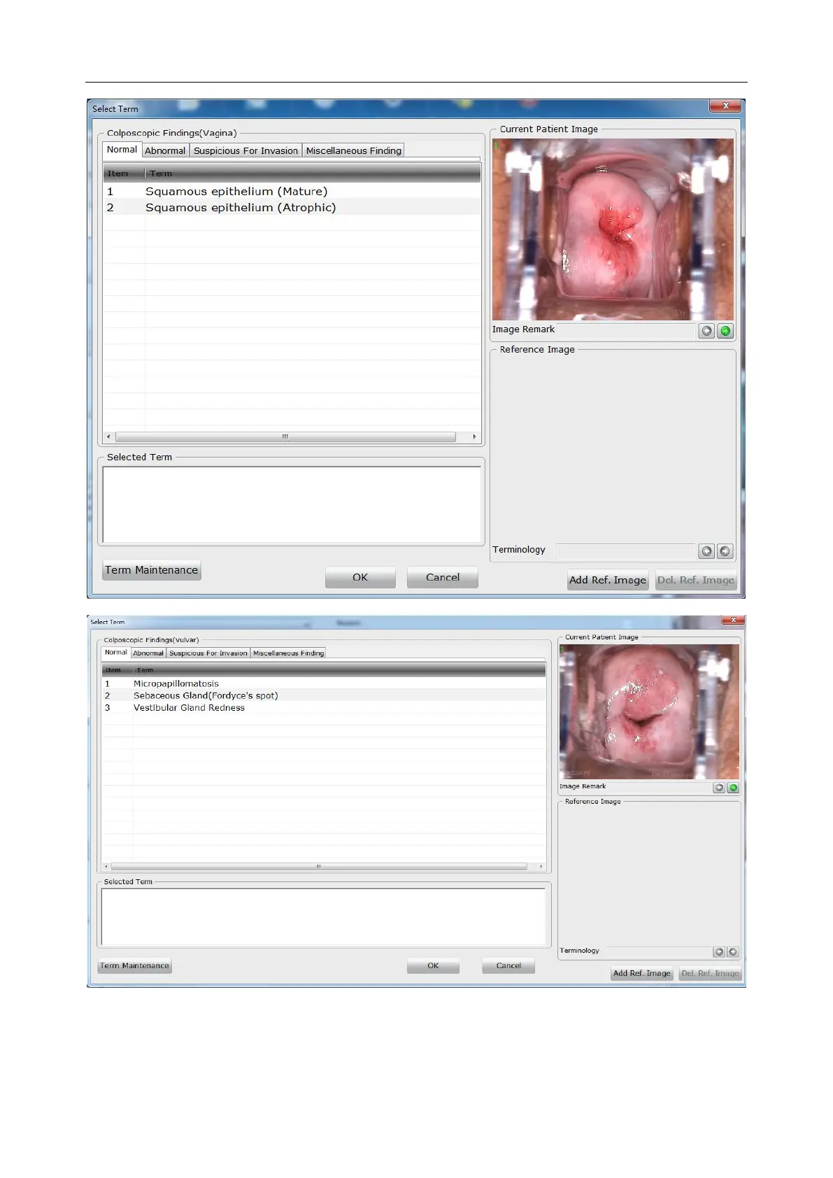 Figure 5-31 Selection of terms for colposcopic findings (vagina)