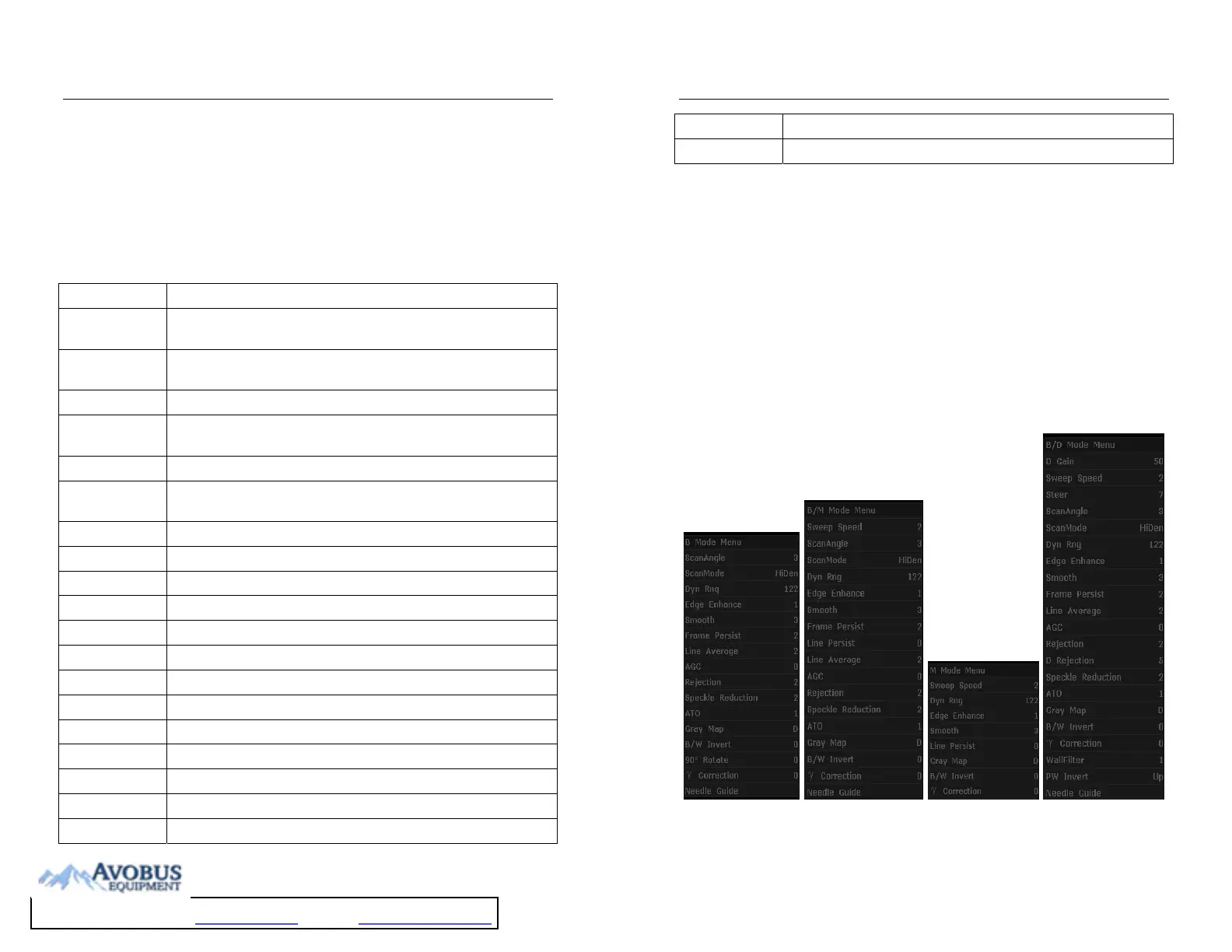 parameters of Doppler wave and 2D image. The following are the system status menus of B