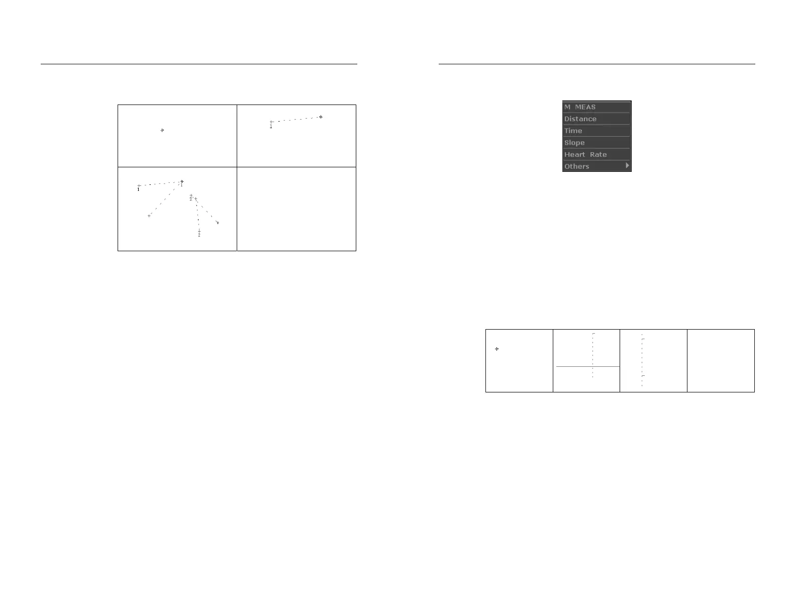 heart rate measurement. M mode measurement menus are shown as follows: