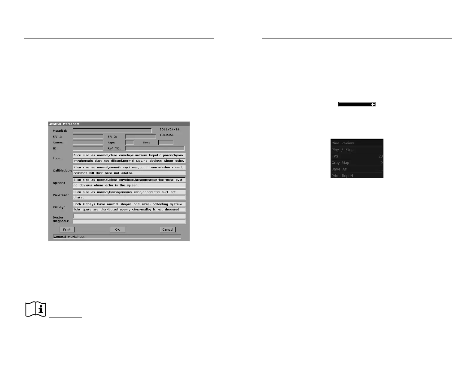To print the general ultrasound report: