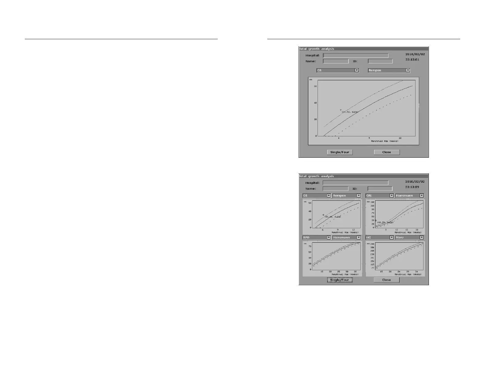 displayed. Then select Growth Curve and press Set, and the Fetus Growth Analysis dialog