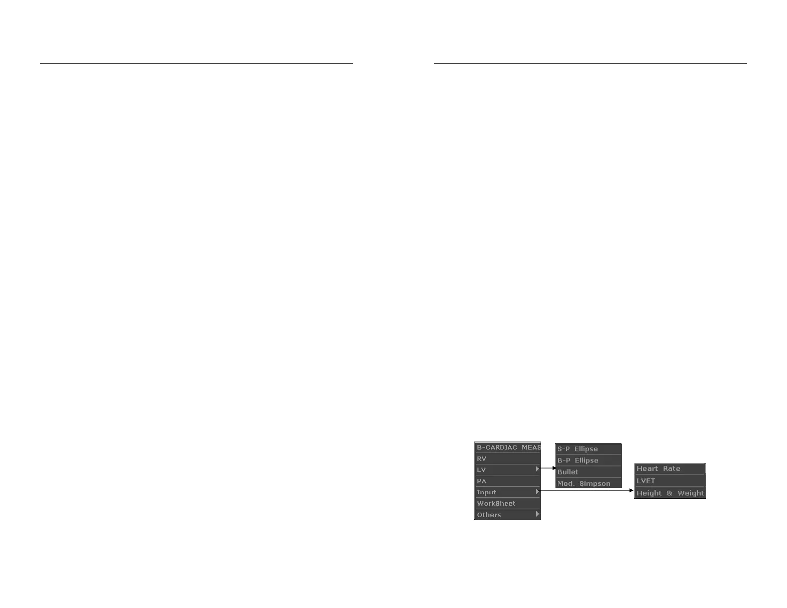 Figure 8-5 B Mode Cardiac Measurement and Calculation Menu