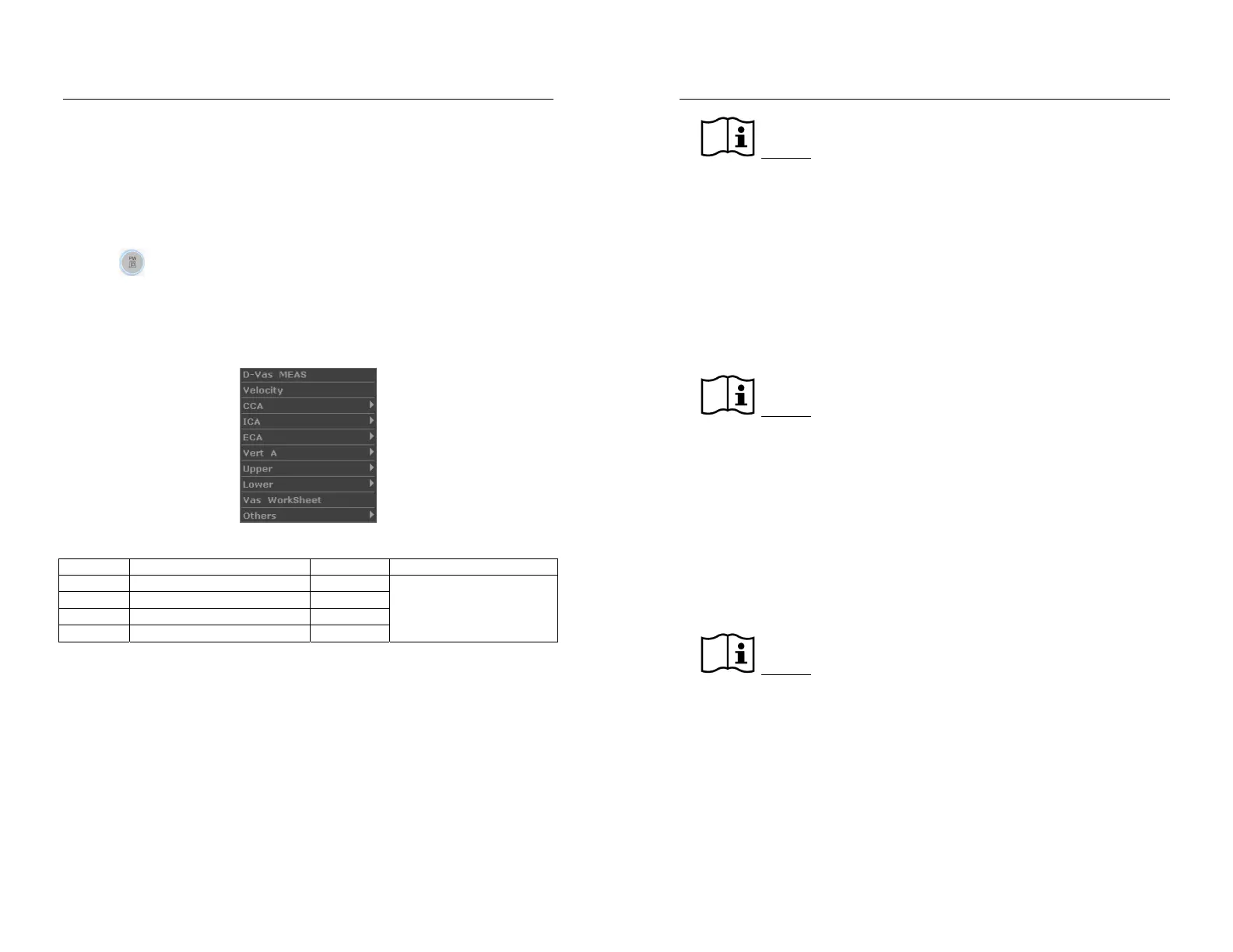 Figure 13-1 Vascular Measurement and Calculation Menu in PW Mode