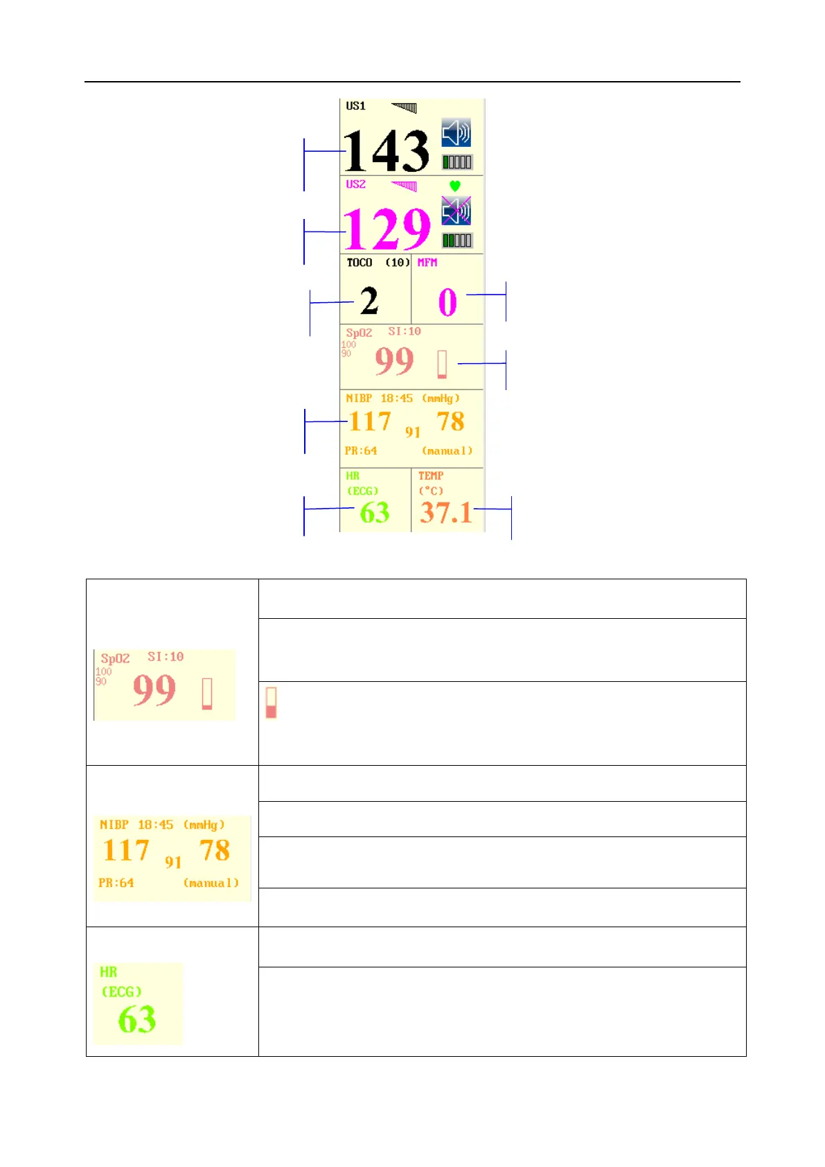 F9, F9 Express Fetal & Maternal Monitor User Manual Maternal Monitoring Display