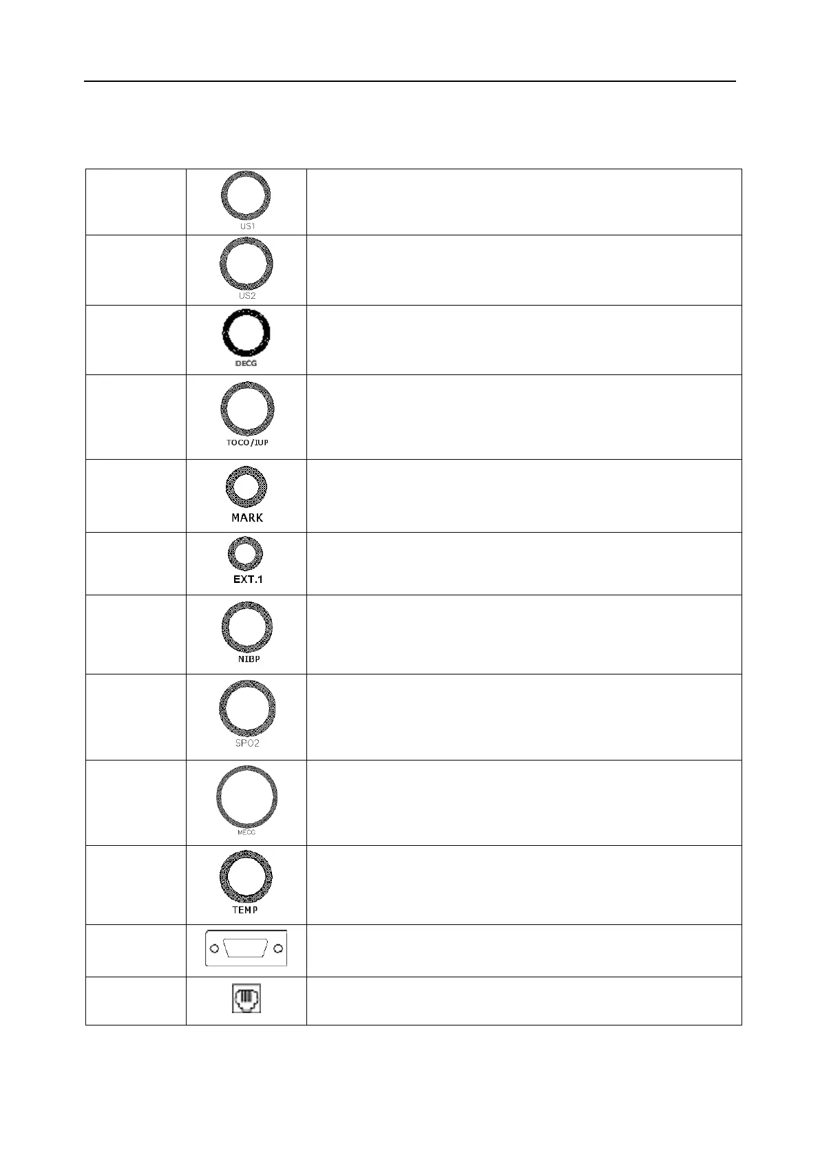Socket for TOCO transducer or IUP cable (Type BF applied