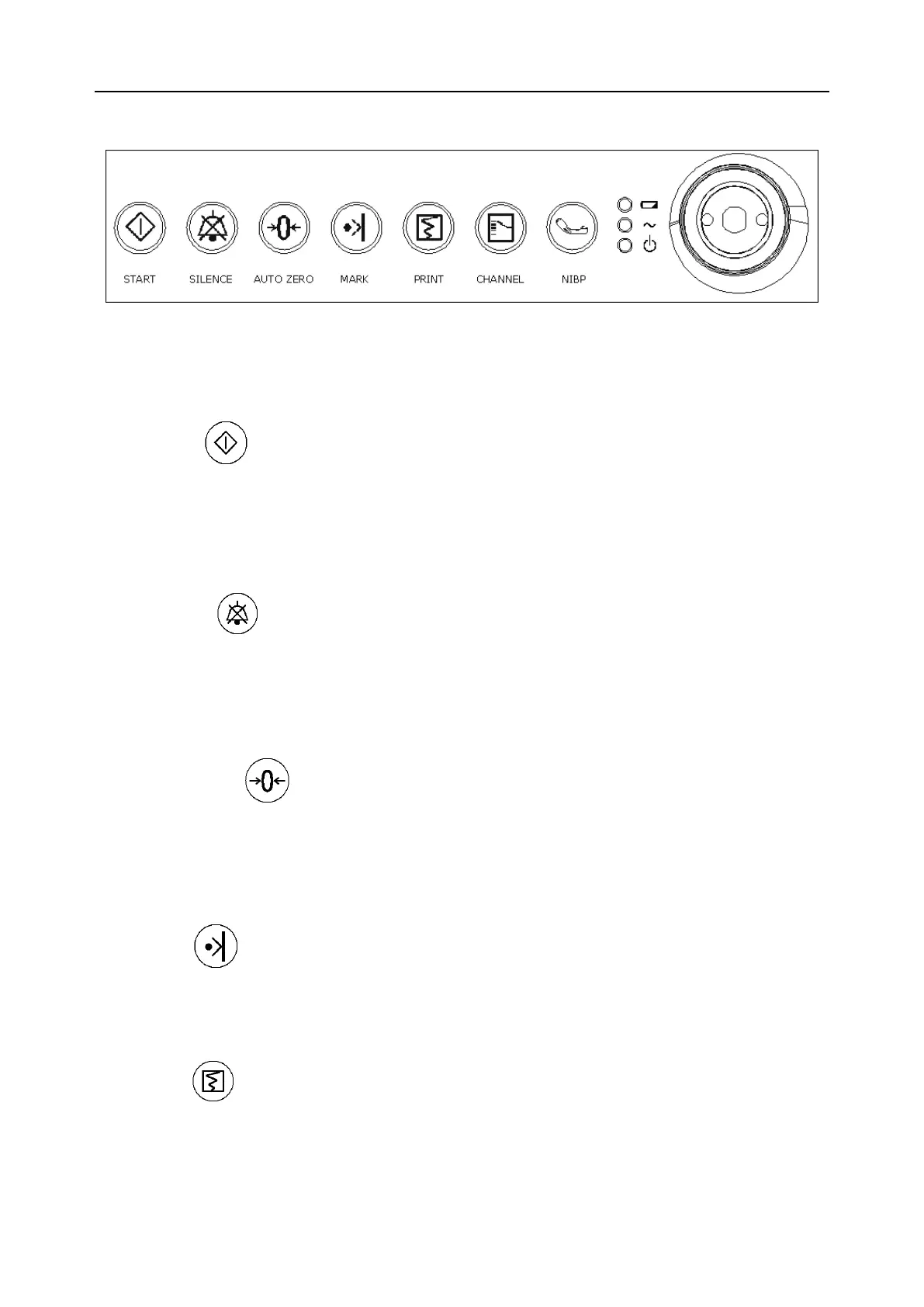 Press this key to disable the current auditory alarm manifestation, and re-enable the monitor‟s