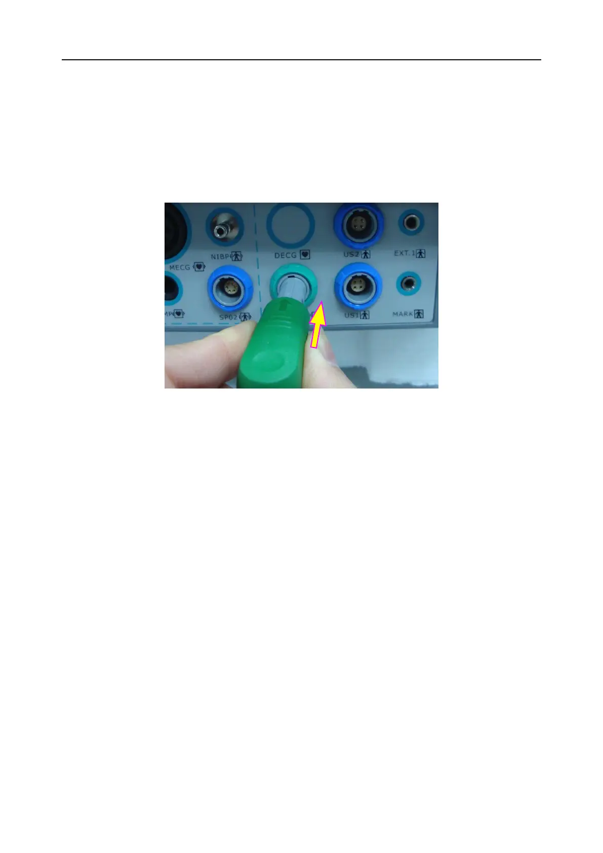 When plugging transducers into the monitor, make sure the arrow symbol of the connector faces