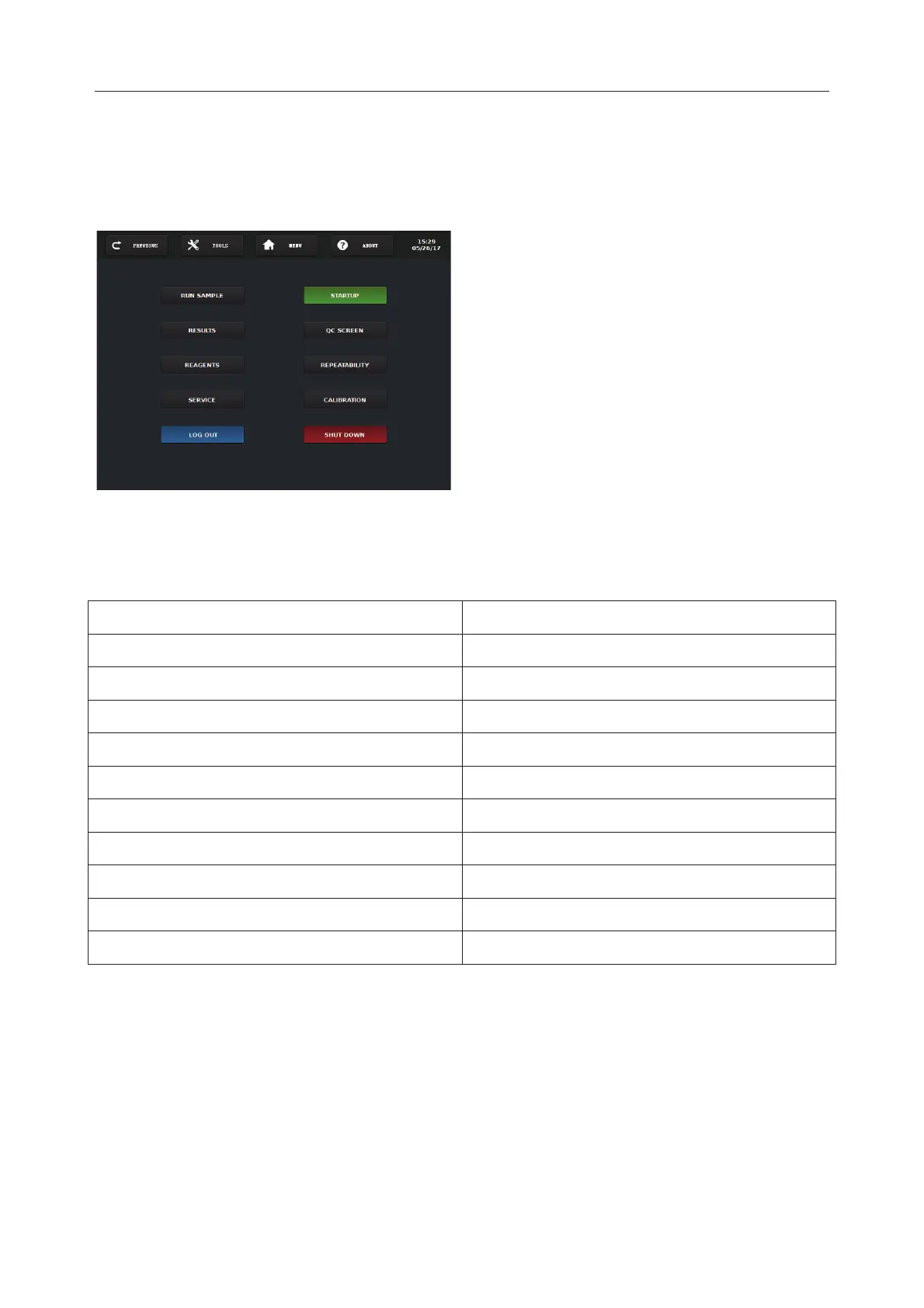 After user login, the system directly enters into Run Sample Screen. Press Menu to enter into