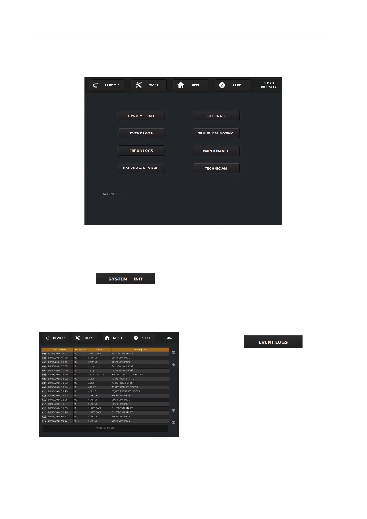 Event Logs Screen