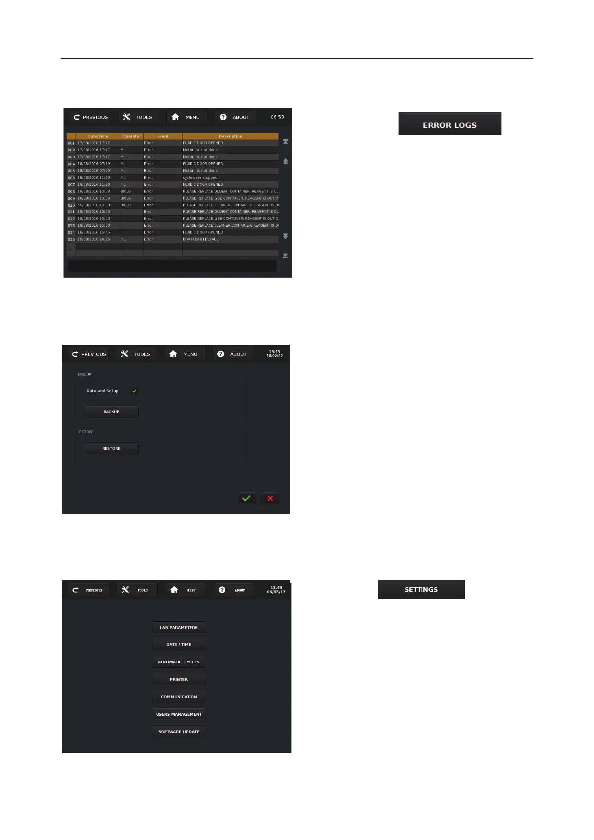 Error Logs Screen