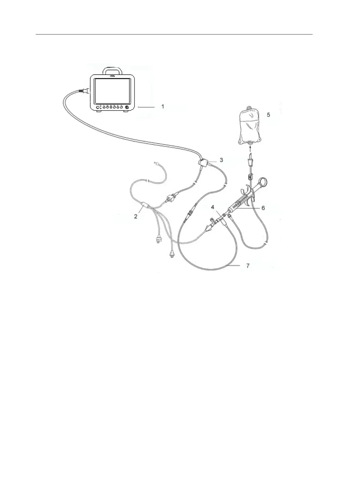 1: Monitor; 2: Thermodilution Catheter; 3: Cardiac Output Cable; 4: Injectate Sensor Housing; 5: