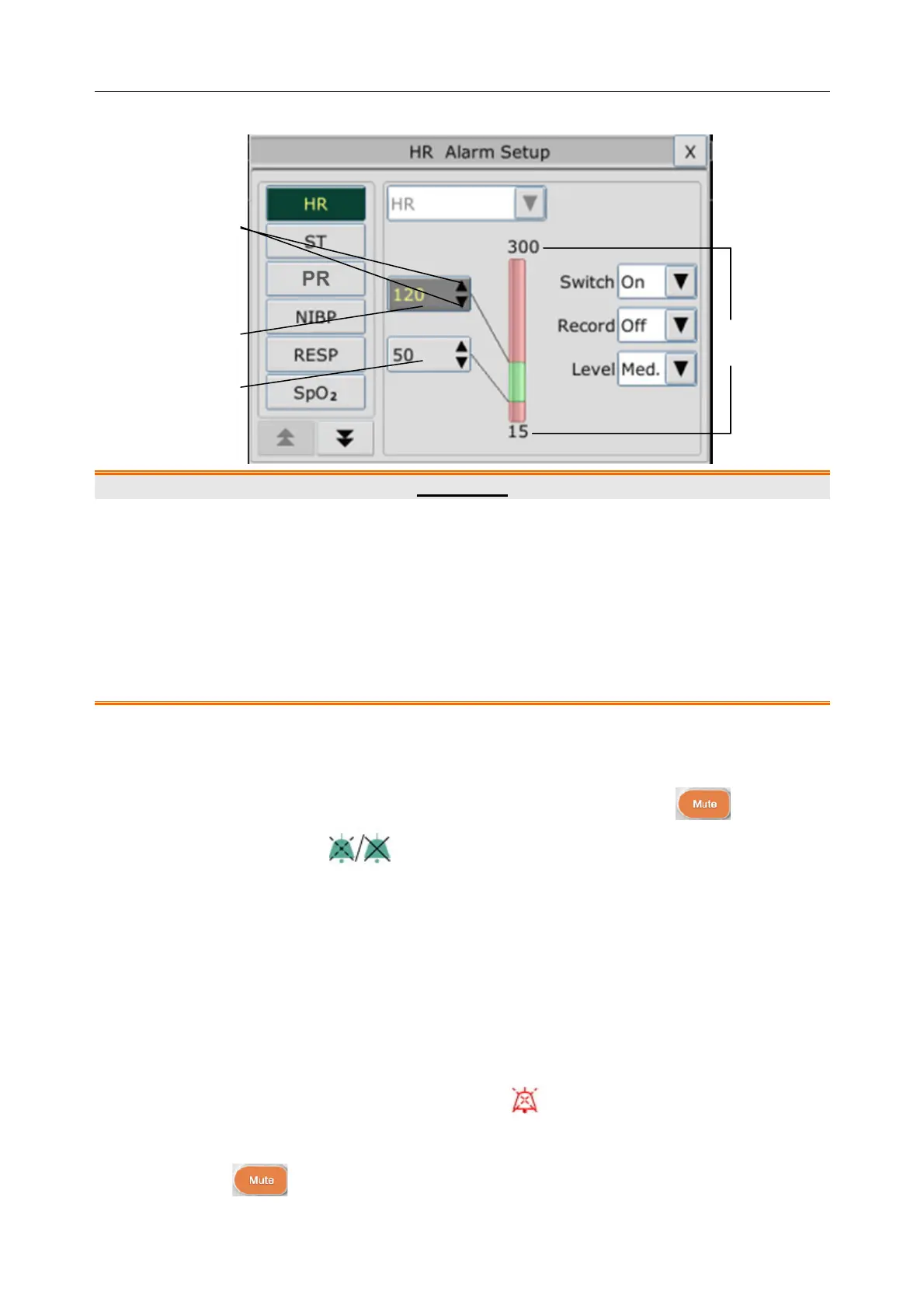 1 When the alarm is set to Off, the monitor won’t give an alarm prompt even if an alarm