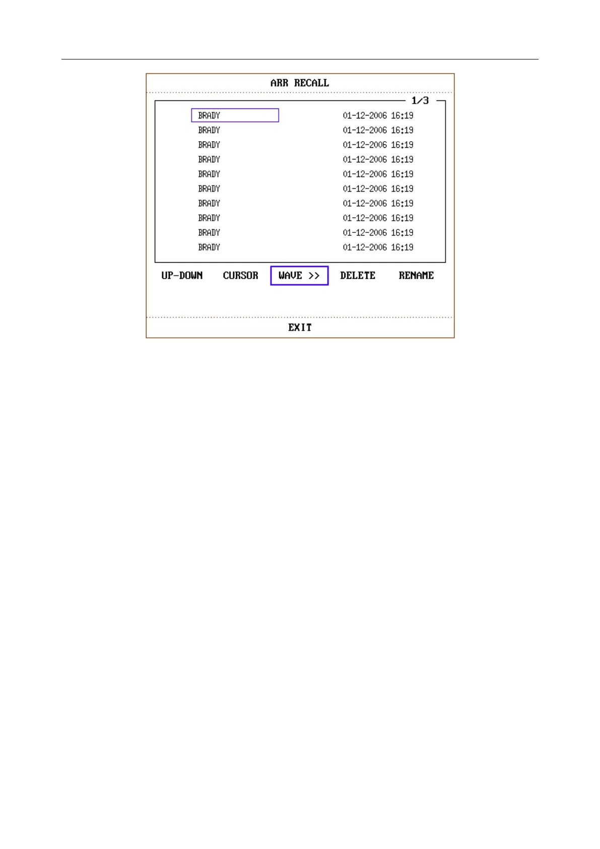 EXIT To return to ARR RECALL menu of Arrhythmia event.
