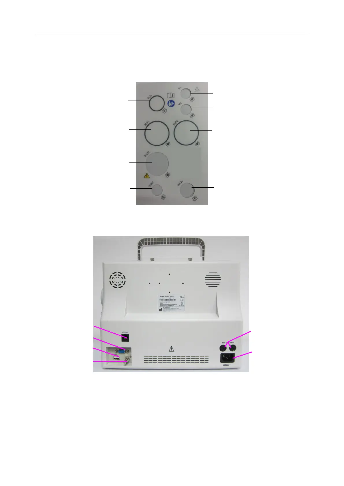 ④ Equipotential grounding terminal for connection with the hospital’s grounding system.