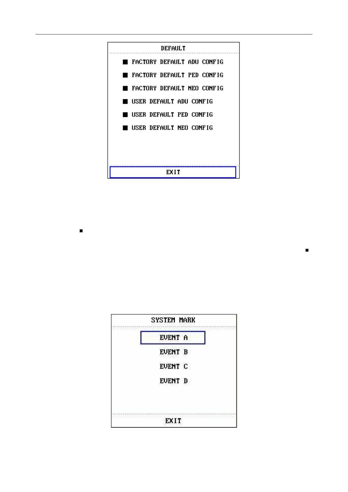 Select MARK EVENT item in SYSTEM SETUP to call up the following menu: