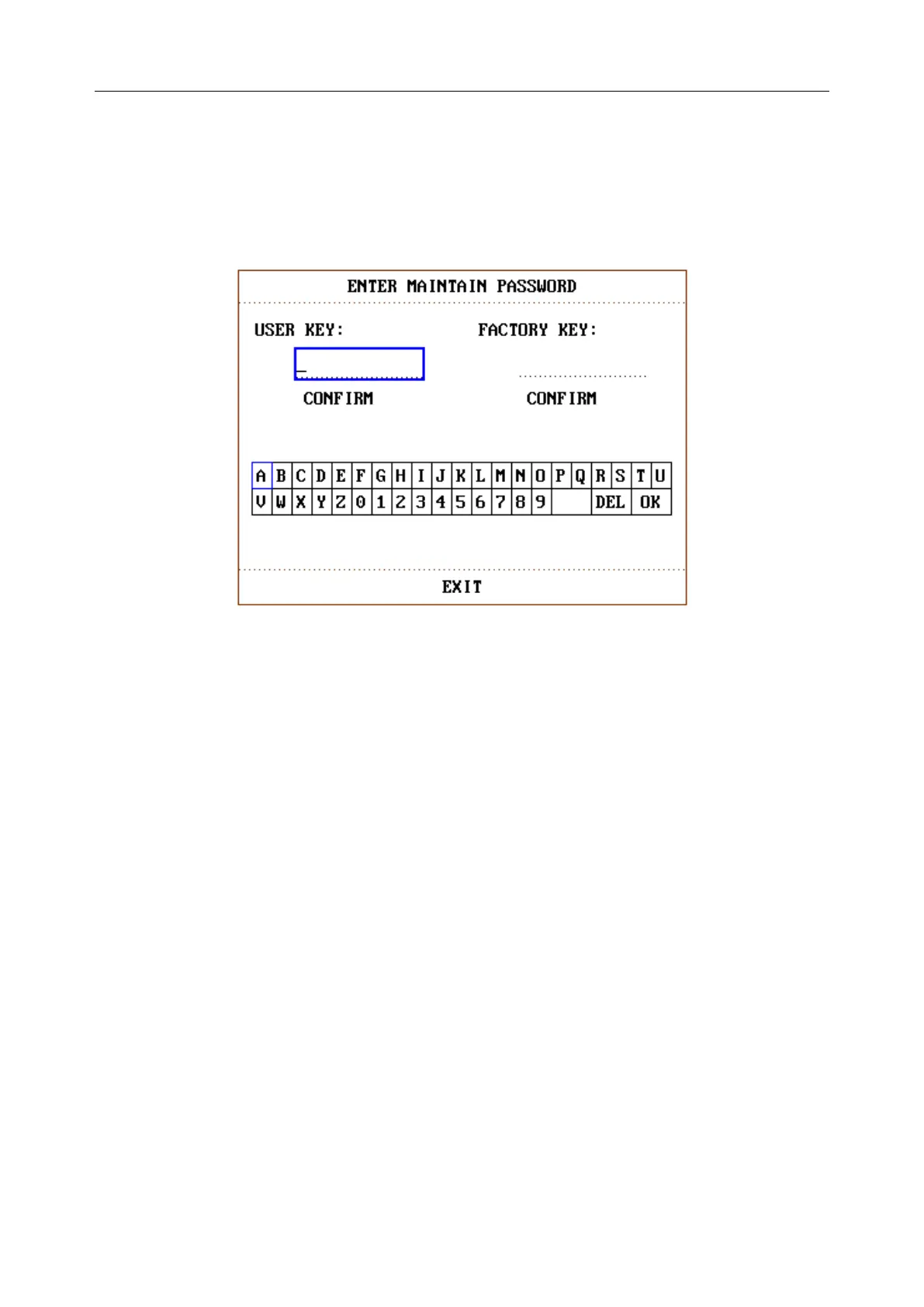 CONFIRM, then the USER MAINTAIN menu will pop up, in which you can set up the