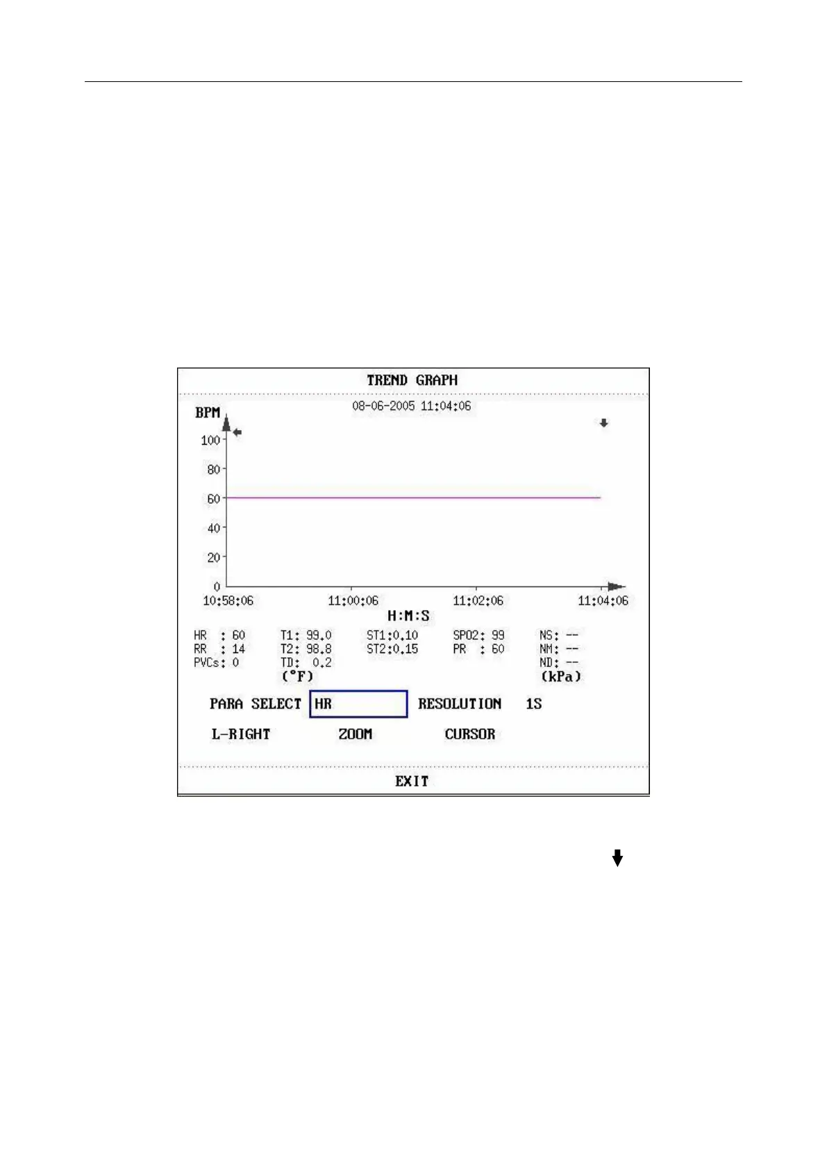 the trend graph, the parameter value of the position pointed by the cursor is displayed below the