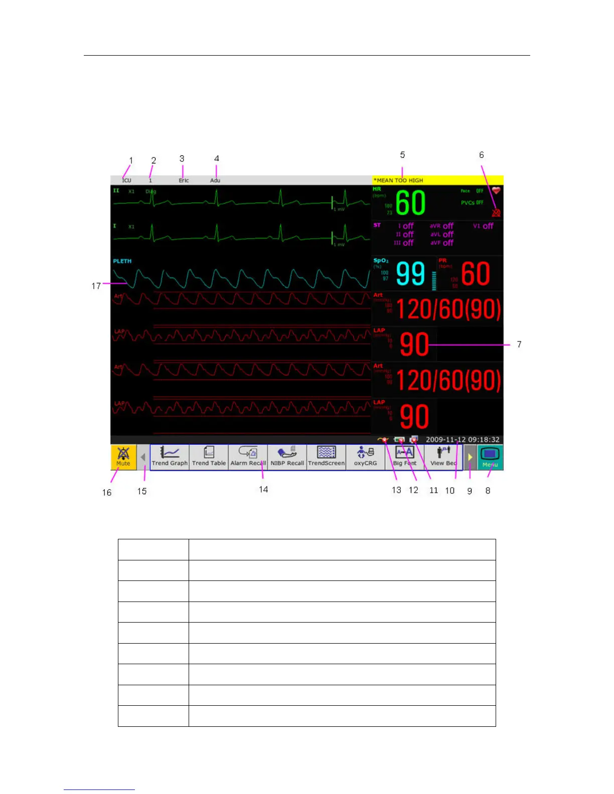 information fields, alarms fields and menus. The configurability of the monitor means that often