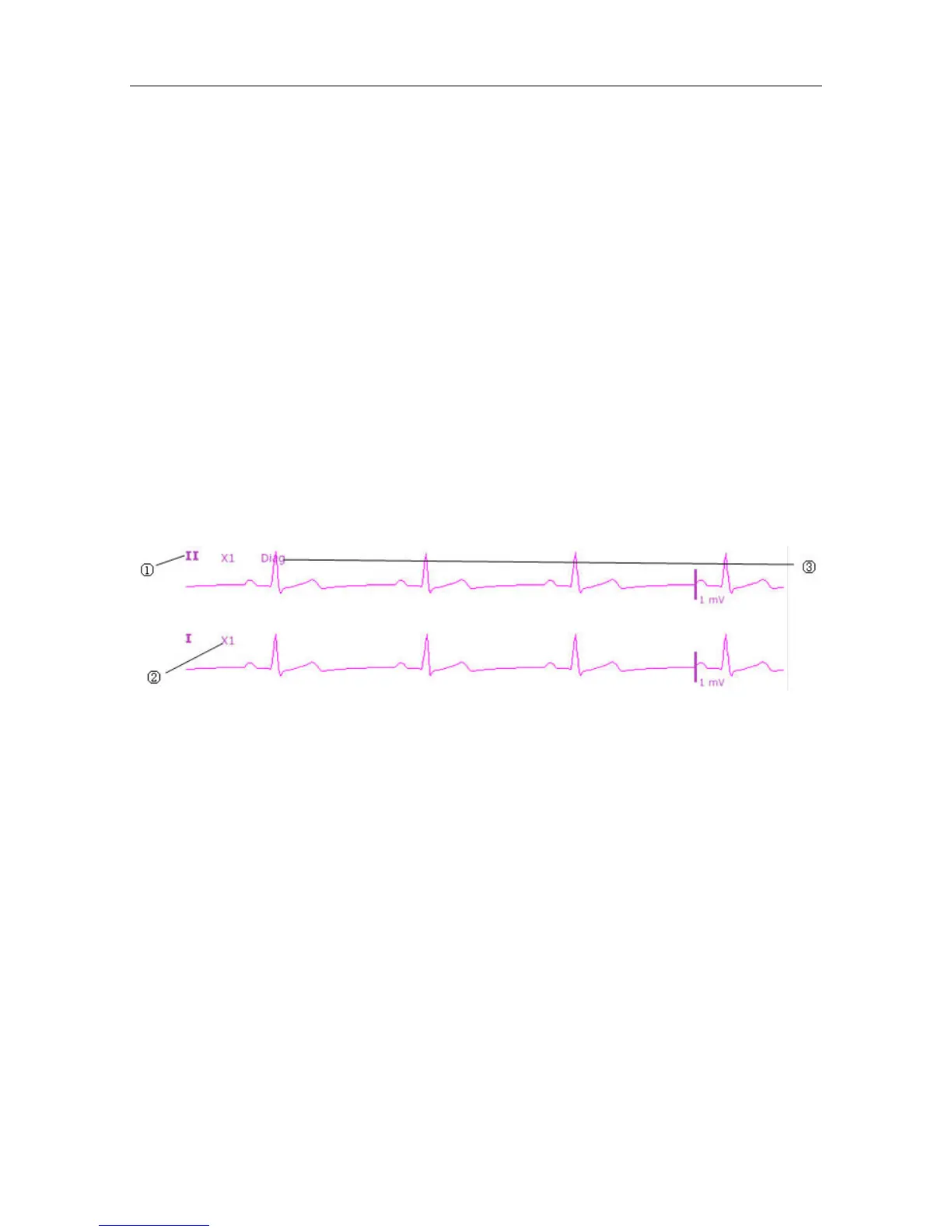 The symbol “①”indicates lead name of display waveform: there are other leads for selection,