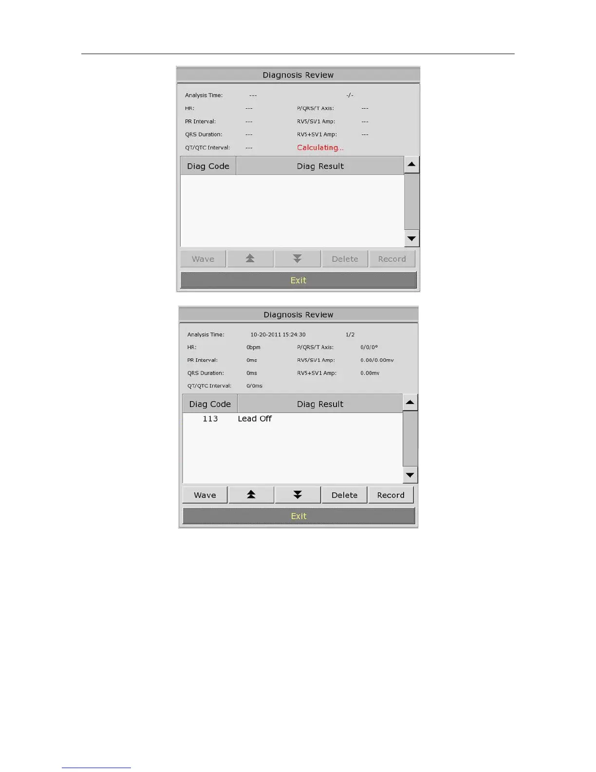 More information about diagnosis review, please refer to Section 12-lead Diagnosis Review.