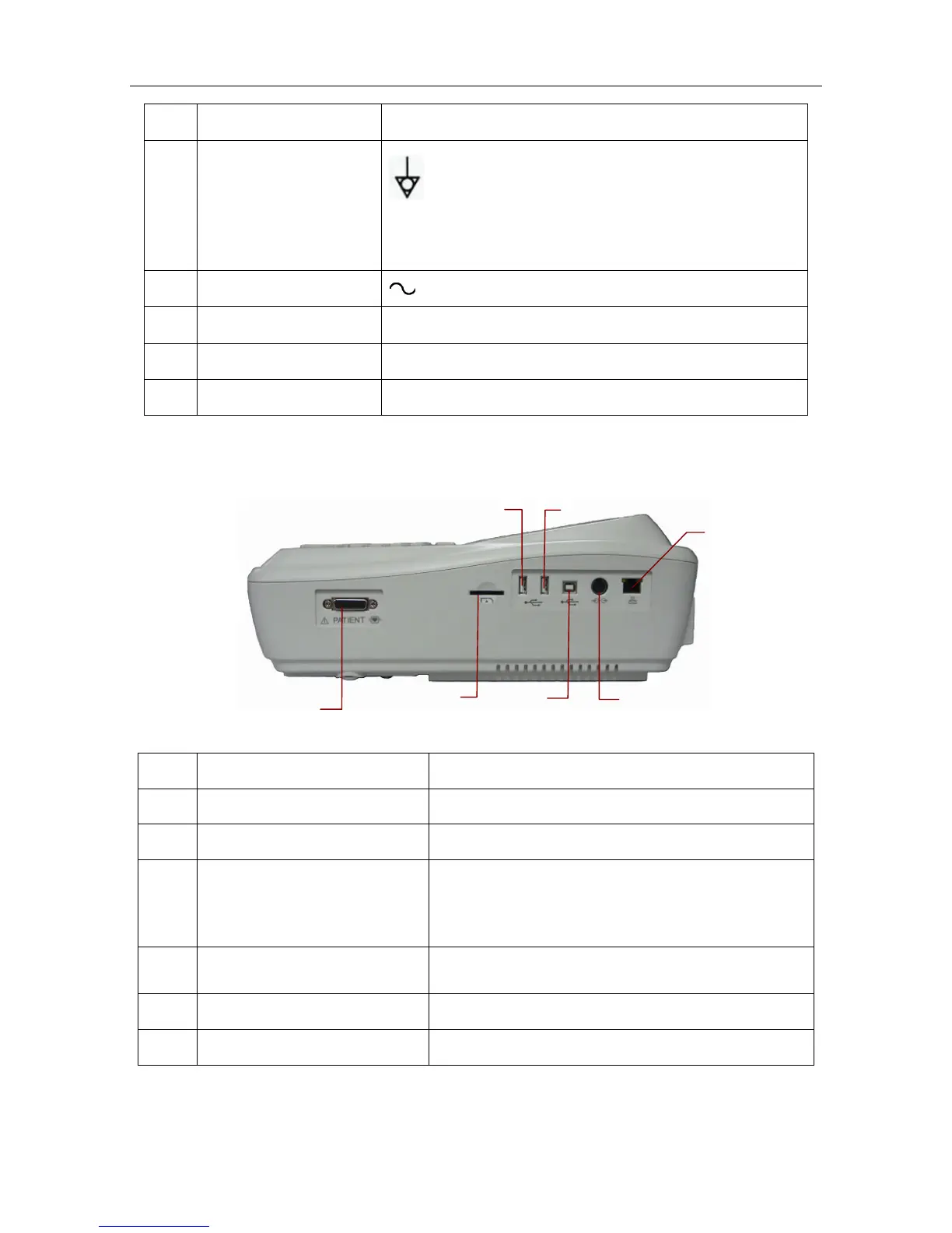 F Net port Standard net port, connecting to a PC