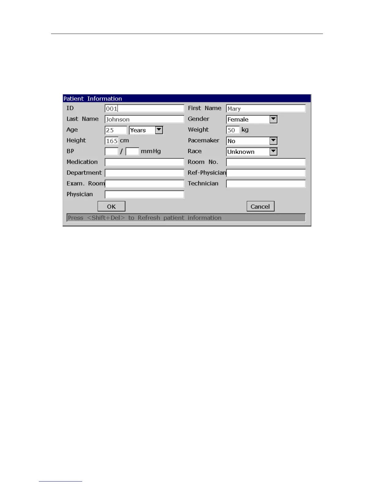 For details, please refer to Section 10.5 “Patient Information Setup”.