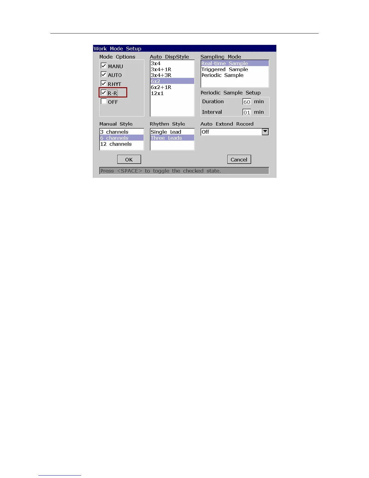 2. When the main screen is displayed, press the MODE key to select the R-R analysis mode.