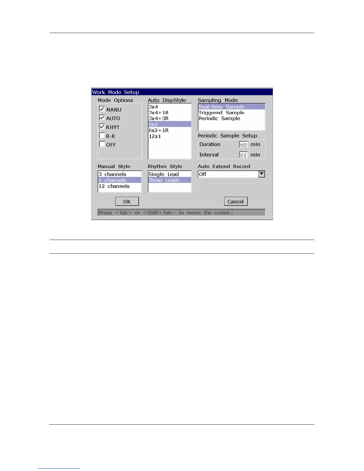 NOTE: Only if a work mode is selected in the Work Mode Setup