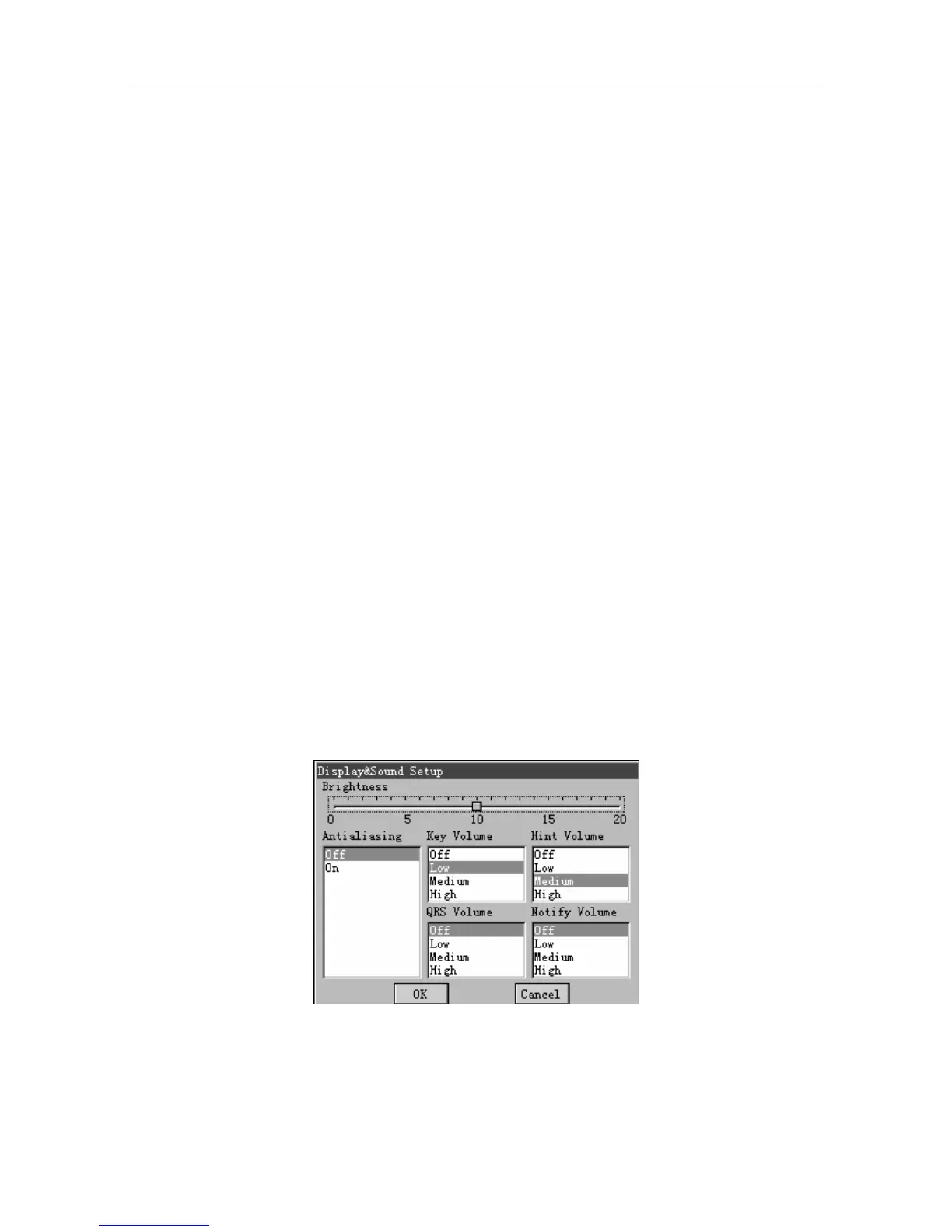In the Display&Sound Setup window, you can set Brightness, Display Colors, Antialising, Key
