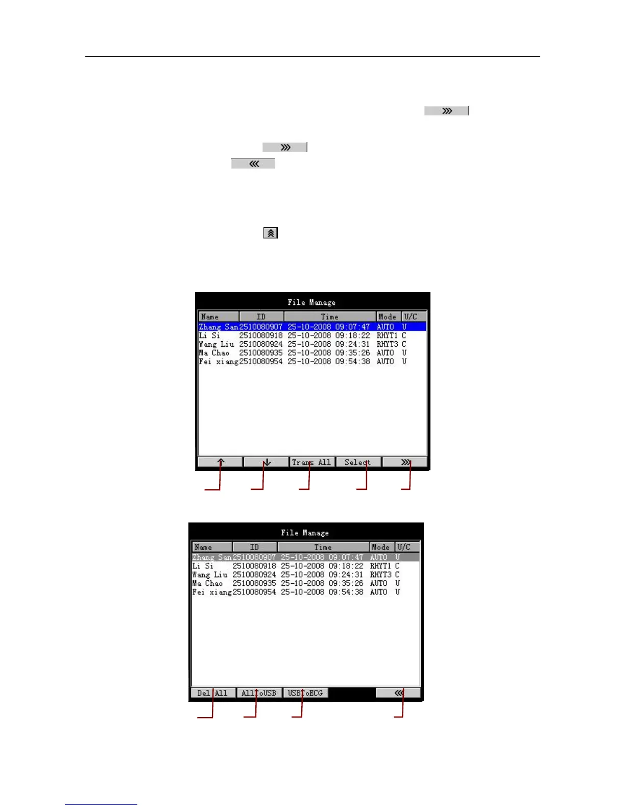1. Press the function key F5 below to display the File Manage screen2. Then press