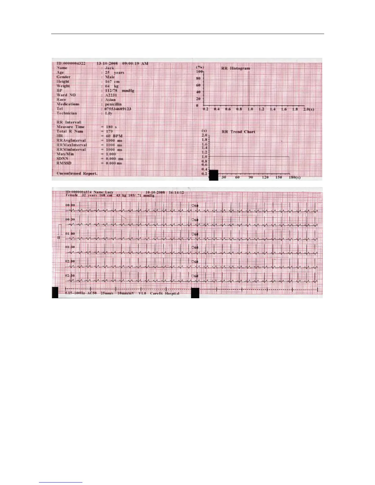 The above figures (a) and (b) show the ECG reports in the R-R mode.