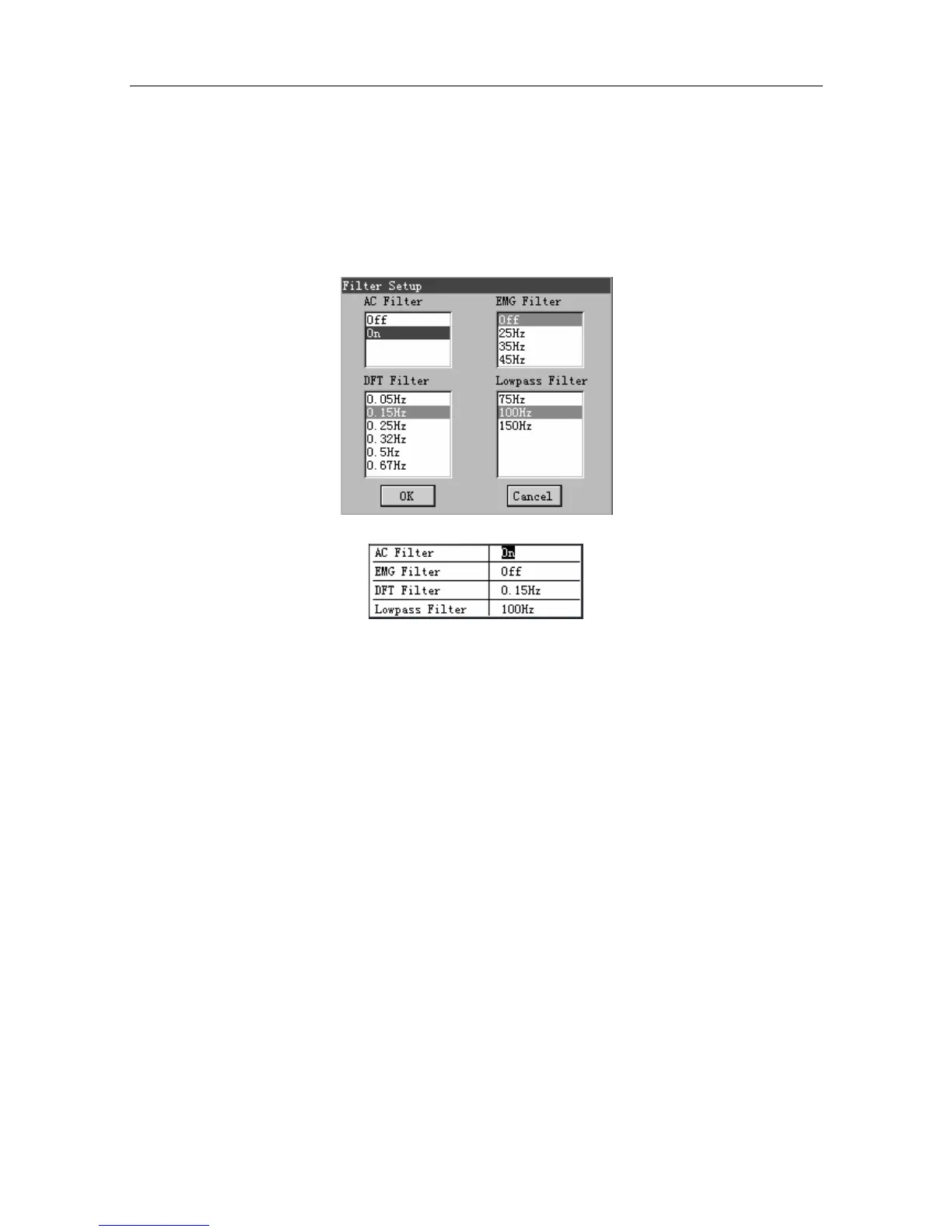 For SE-601B/C, press Tab or Shift + Tab to move the cursor to the EMG Filter item in the Filter
