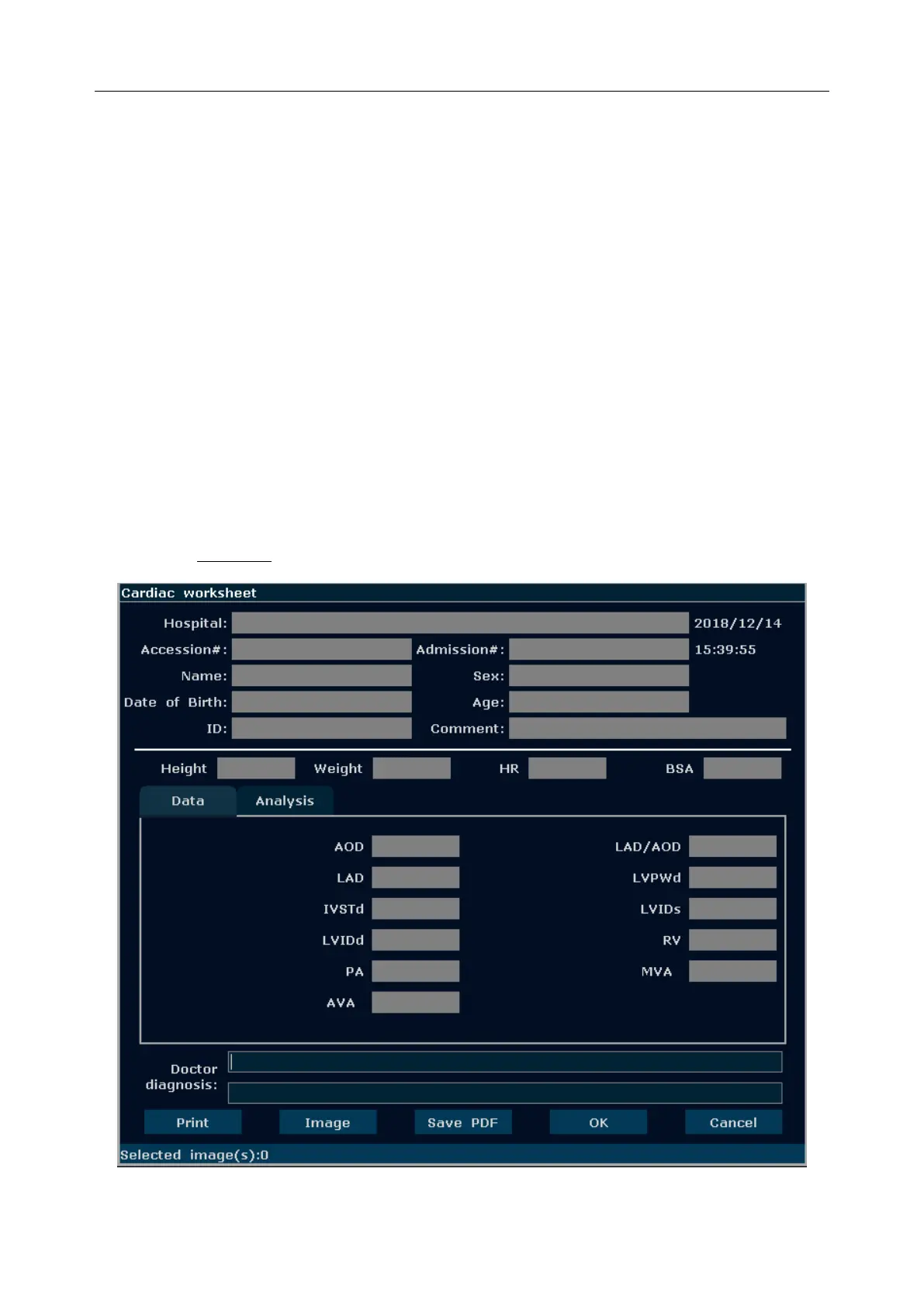 2. In M/B mode, after application measurements press Report to open Cardiac worksheet, as