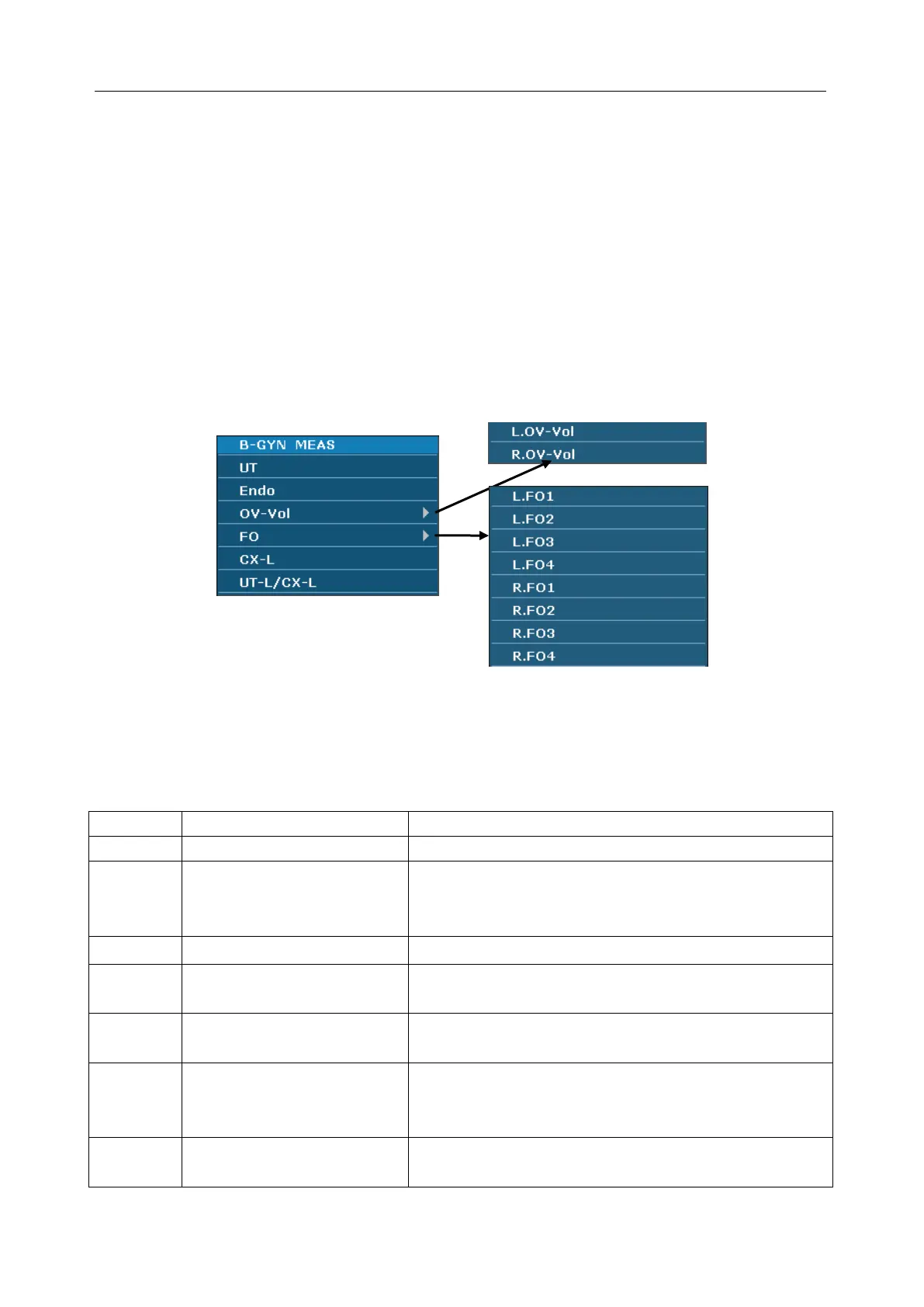 Figure 10-1 Gynecology Measurement and Calculation Menu in B Mode