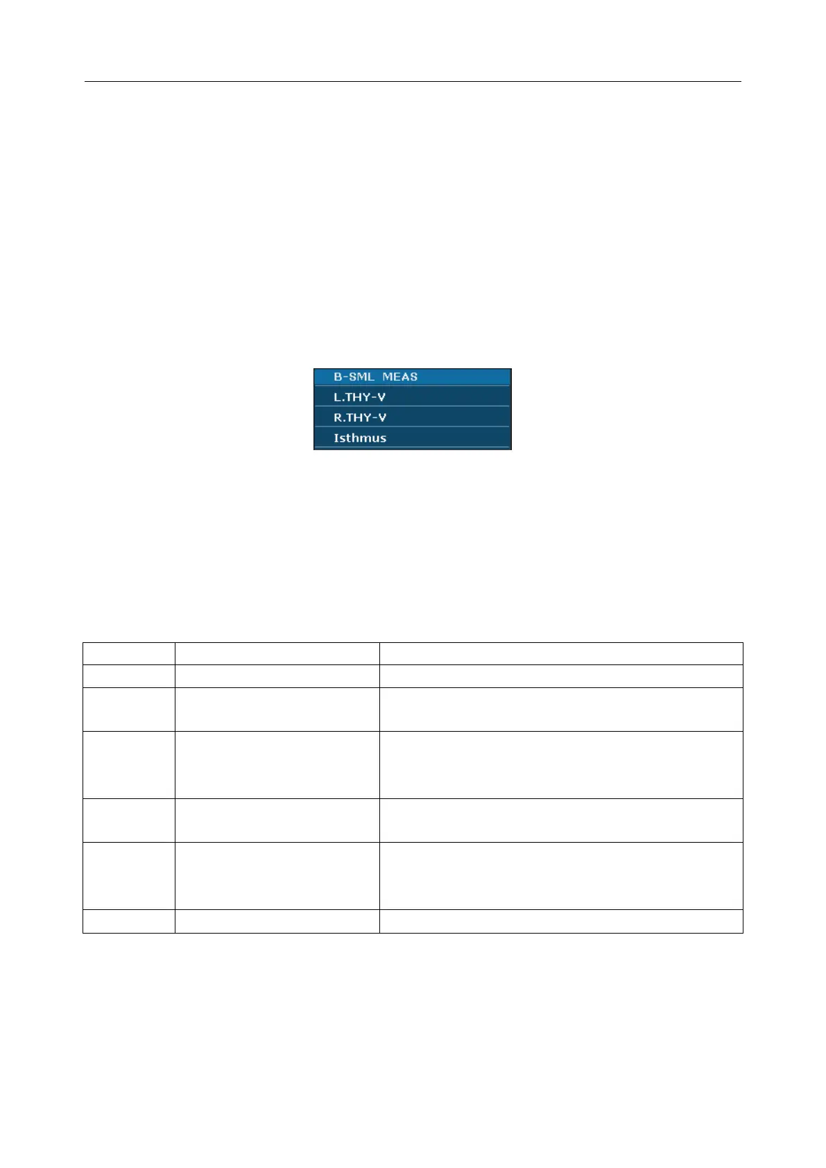 1. In the small parts measurement menu, roll the trackball to highlight L.THY-V, press Set.