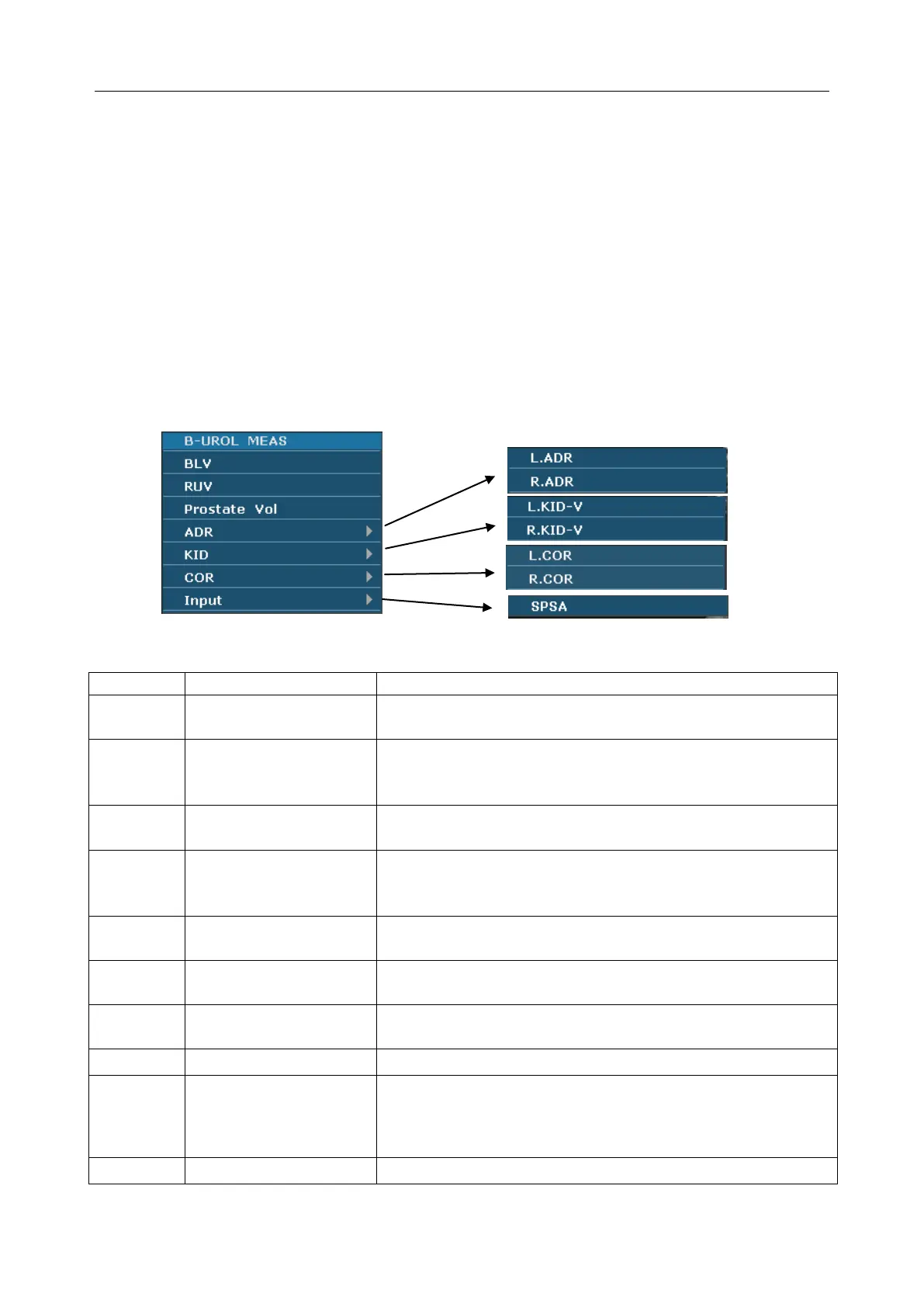 Figure 12-1 Urology Measurement and Calculation Menu