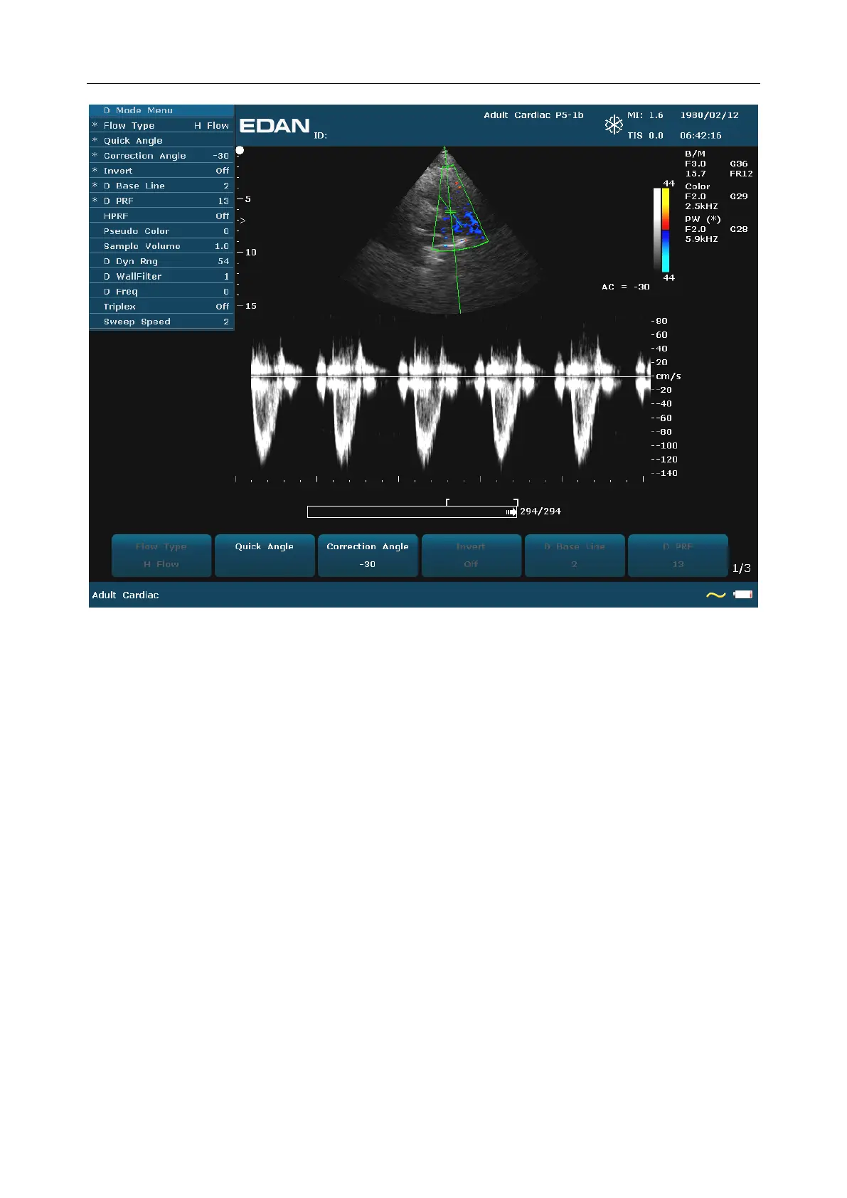 the correction angle, etc. Then press Update to switch to real-time PW images.