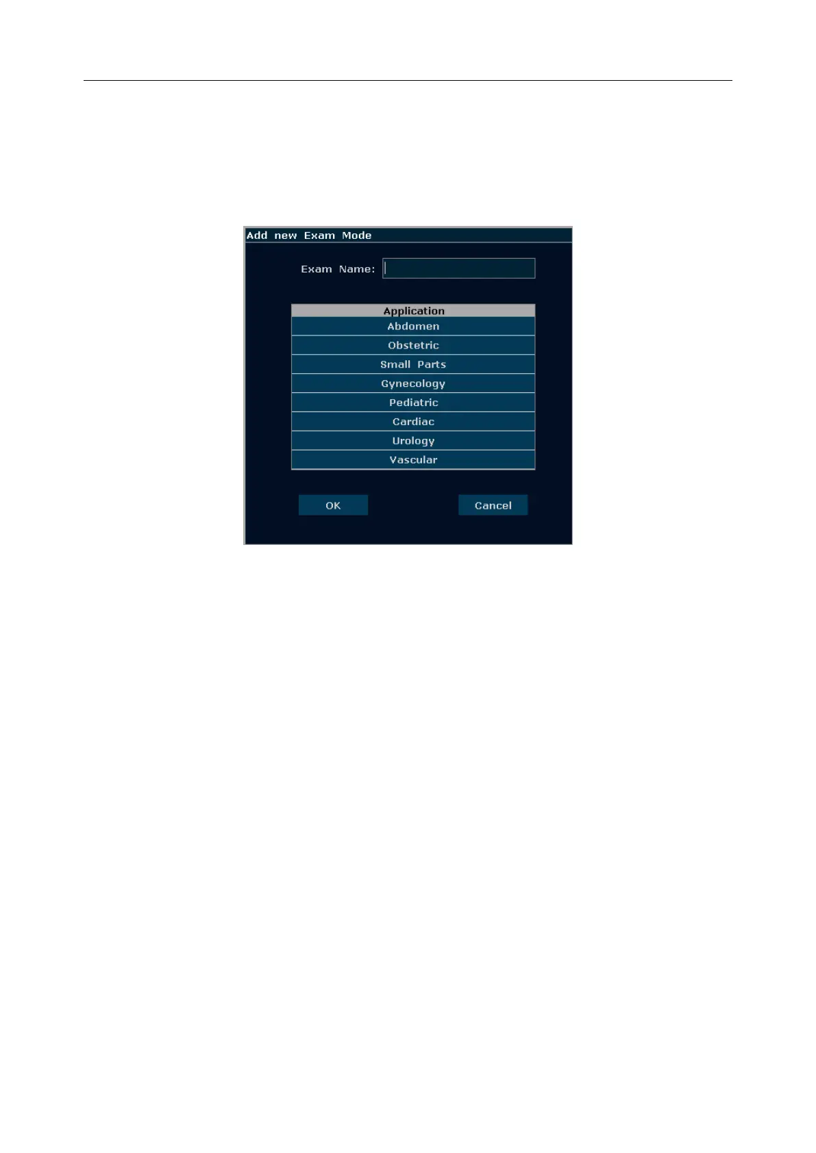To add an exam: Press Add to display the Add new Exam Mode dialog box, as shown