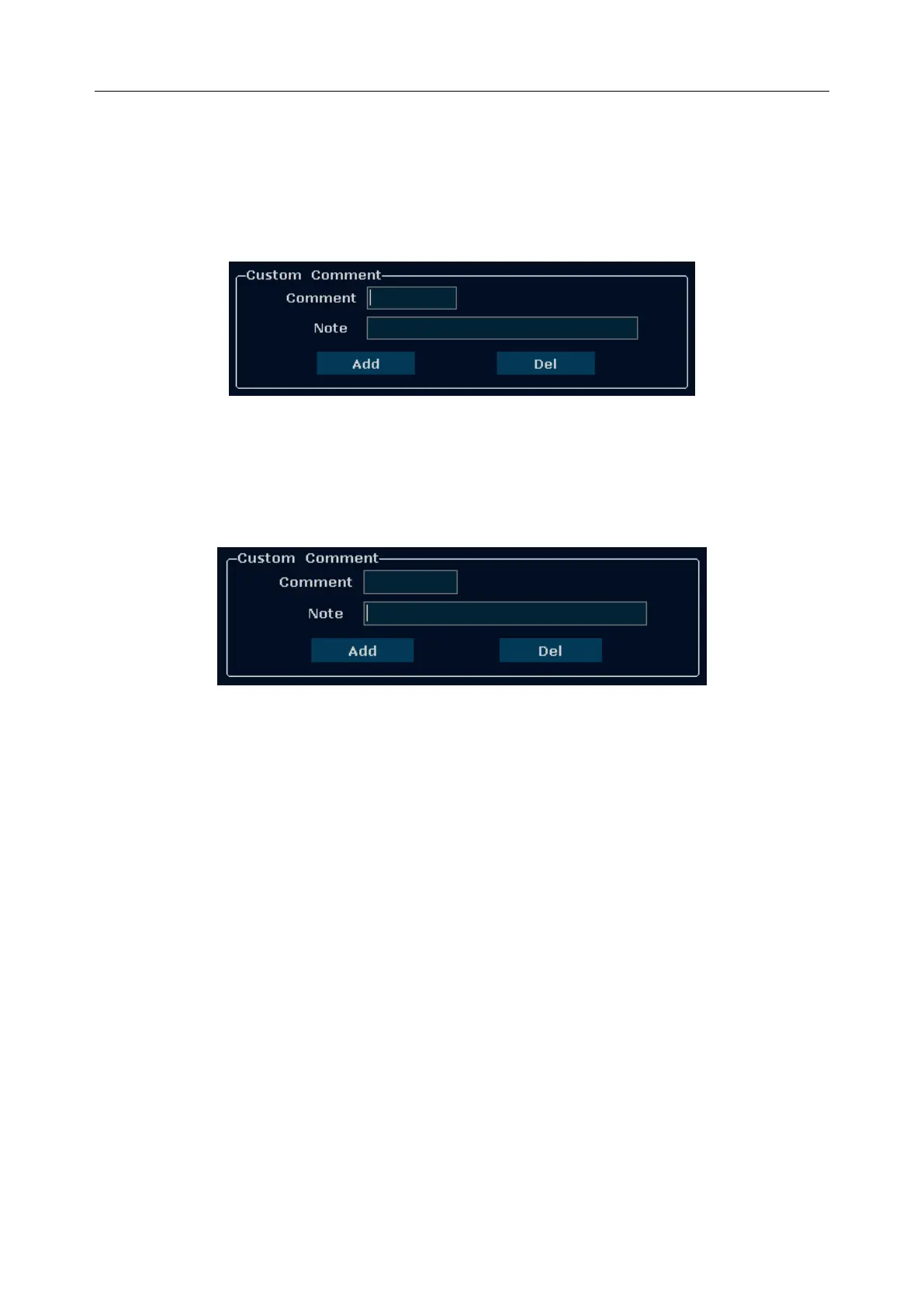 2. Roll the trackball to the Comment editable filed in the Custom Comment box, and press Set.