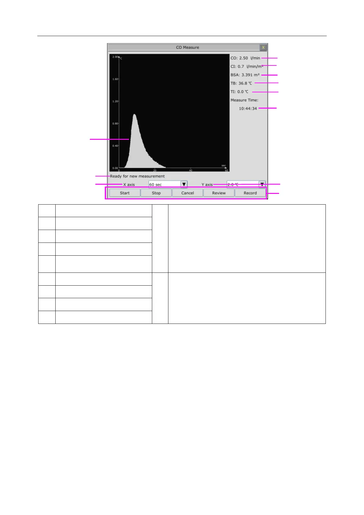blood temperature and the injectate temperature are displayed during the measurement. Curve