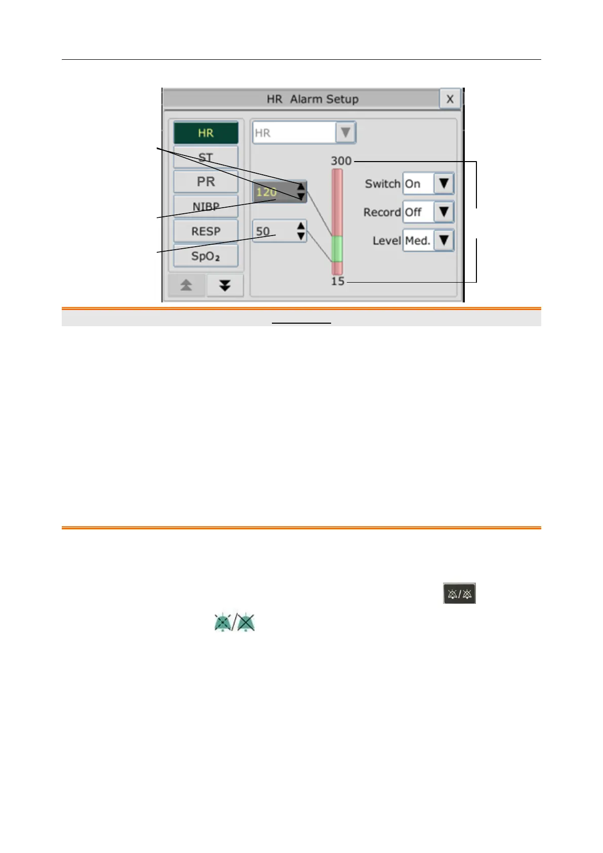 1 When the alarm is set to Off, the monitor won’t give an alarm prompt even if an alarm