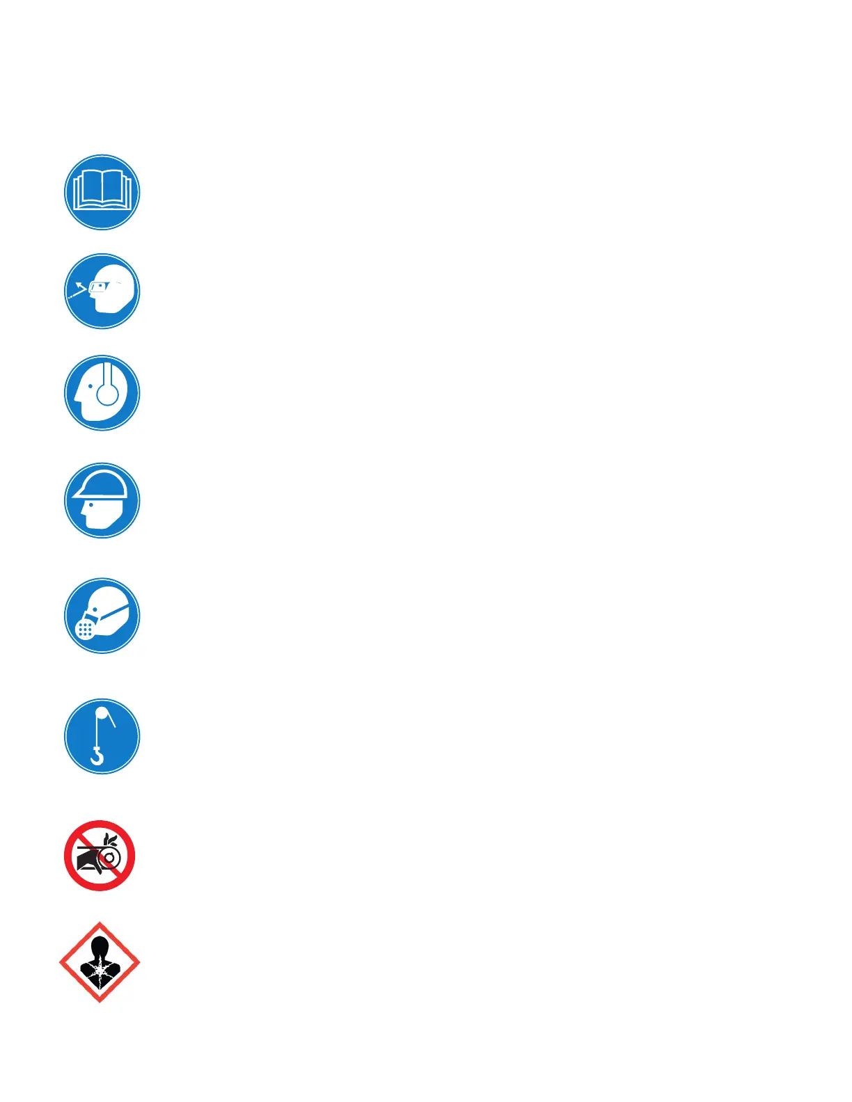 This symbol means that proper eye protection must be worn/used during the operation of this equipment. There is